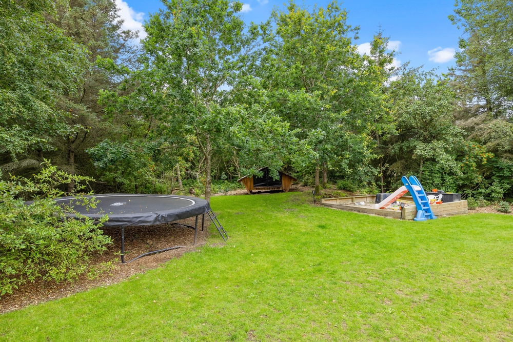 Hvis I kan lide at nyde naturen på den danske vestkyst, så tilbyder feriehuset i Ahornalle 1 jer en stor og overdækket terrasse samt en rummelig naturgrund, som vil være et hit hos både store og små. På terrassen kan du nyde en kold drink, mens børnene leger. Her vil trampolinen og sandkassen være et sikkert hit for alle børn, der kan lide at lade fantasien få frit løb.