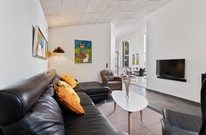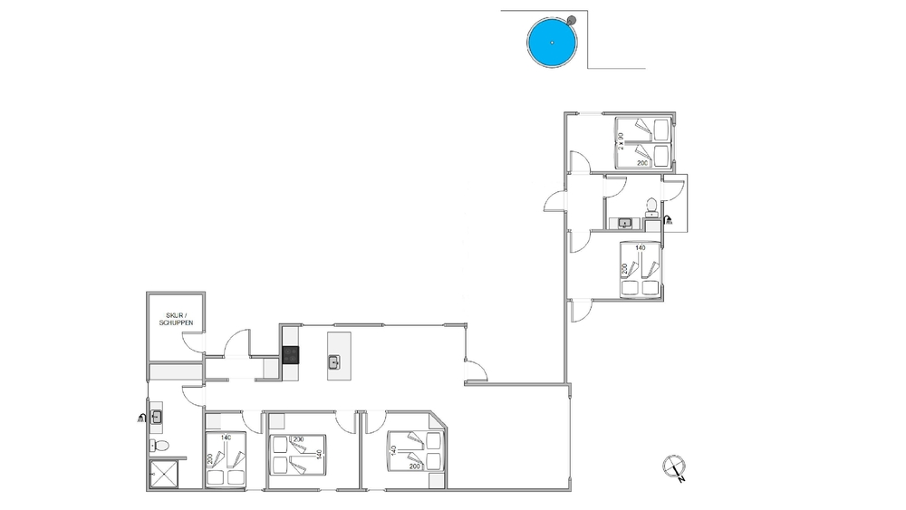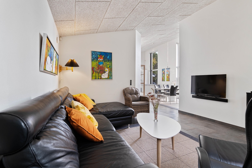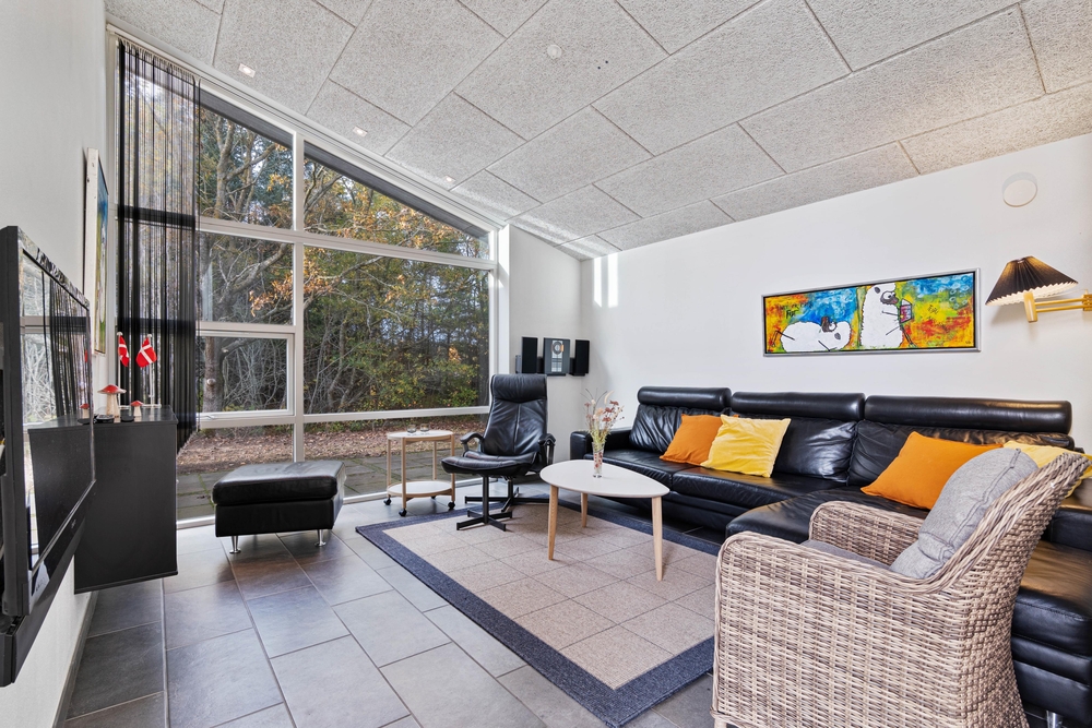 Feriehuset på Ahornalle 1 har plads til op til 10 personer, fordelt på 5 soveværelser, alle med dobbeltsenge. Feriehusets hjerterum er den store stue, som kombinerer stue, spiseplads og køkken. Her kan I tilbringe tid sammen, lave mad sammen eller spille spil. Fladskærms-tv?et i stuen indbyder til fælles filmaftener, som helt sikkert vil være et hit ? især på regnvejrsdage.
