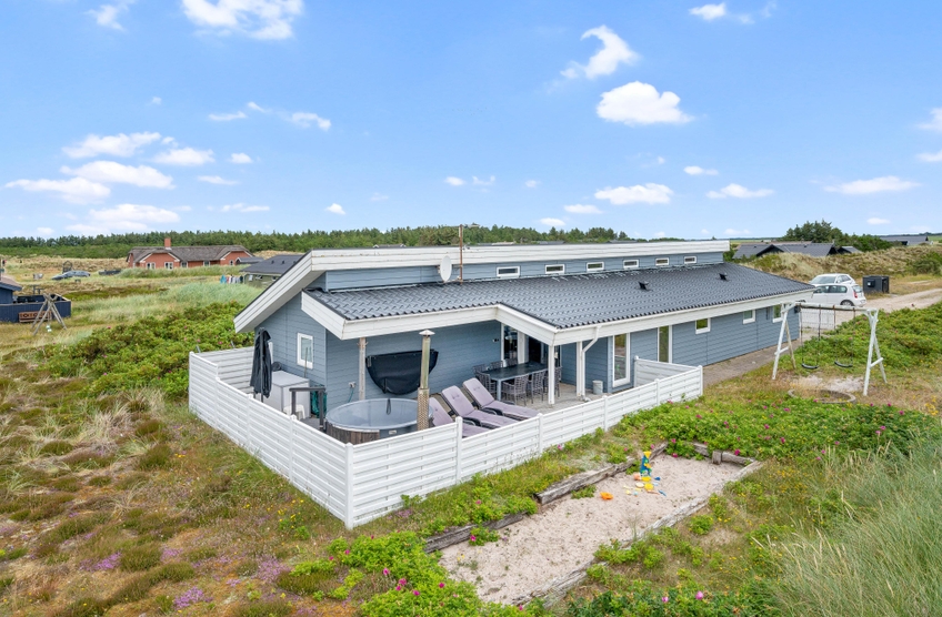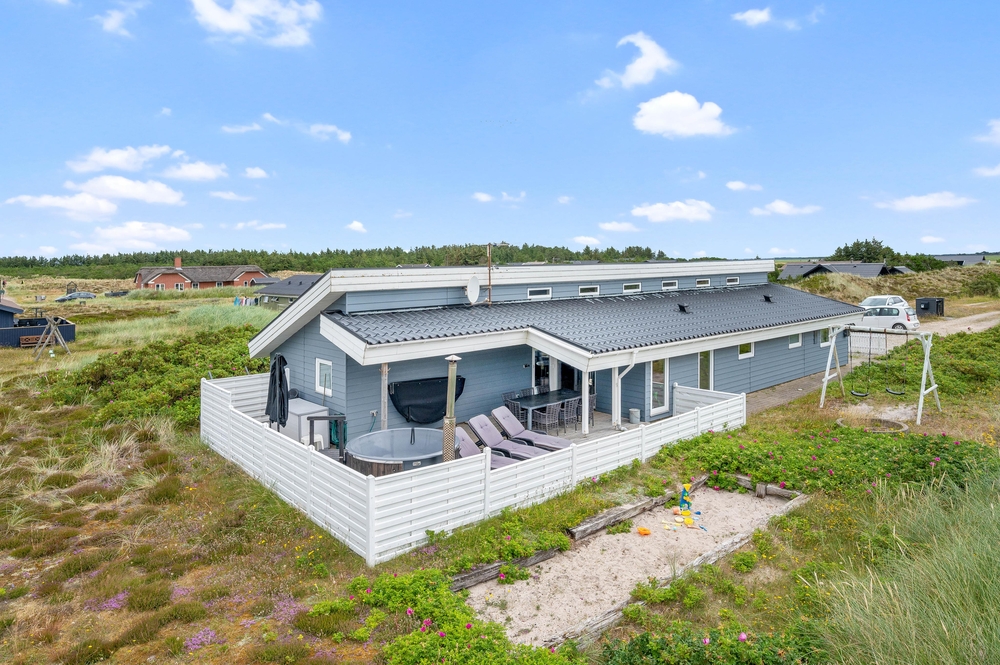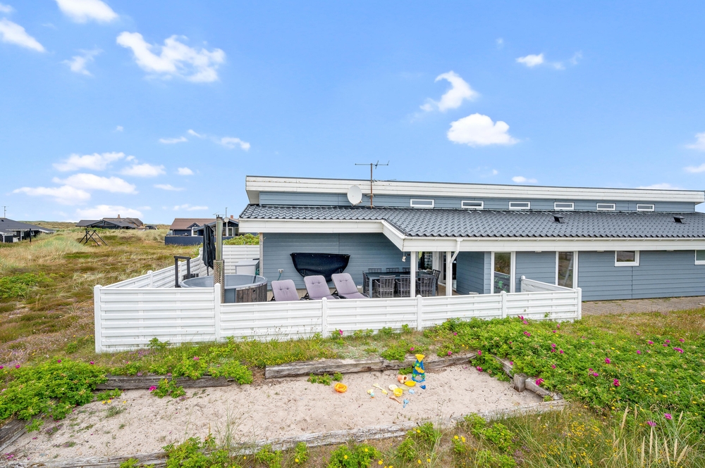 Feriehuset ligger på Arvidvej, der ligger i et dejligt roligt feriehusområde ca. 17 kilometer fra Hvide Sande. Herfra er der kun ca. 400 meter ned til stranden, hvor du sikkert vil tilbringe mange timer med familien. Her kan du nyde en gåtur langs vandet med hunden, samle sten og muslingeskaller, eller bygge sandslotte eller flyve med drage sammen med børnene.