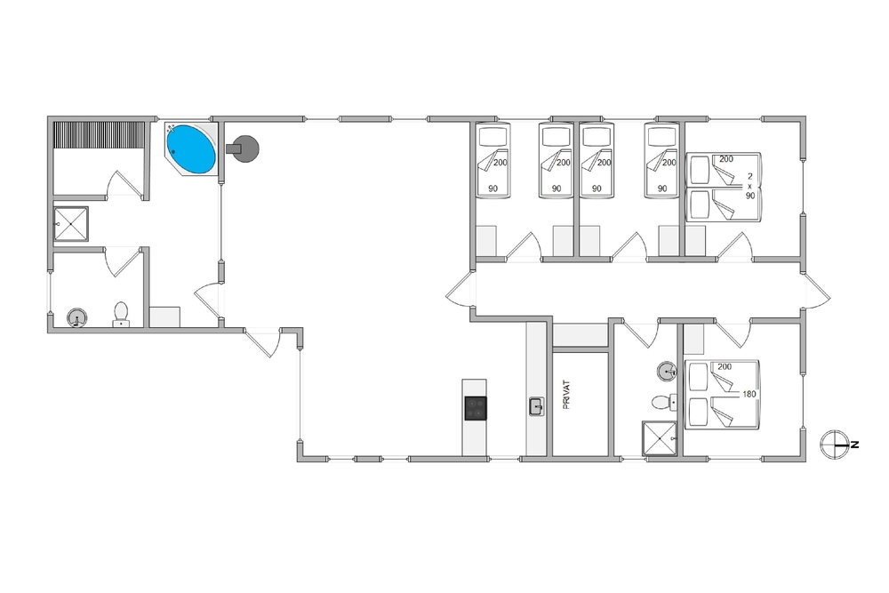 Feriehuset er dejligt og rummeligt, så du her har god plads sammen med familien. Især spiseafdelingen og stuen indbyder til hygge og kvalitetstid og fra det åbne køkken kan du også deltage i samværet, mens du forbereder lidt lækkert feriemad.