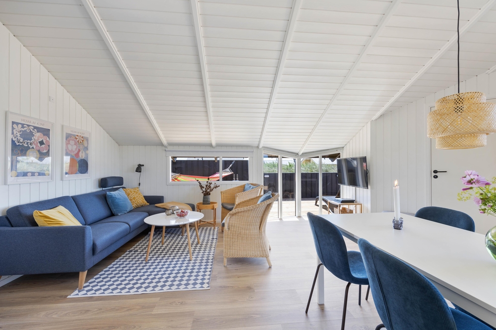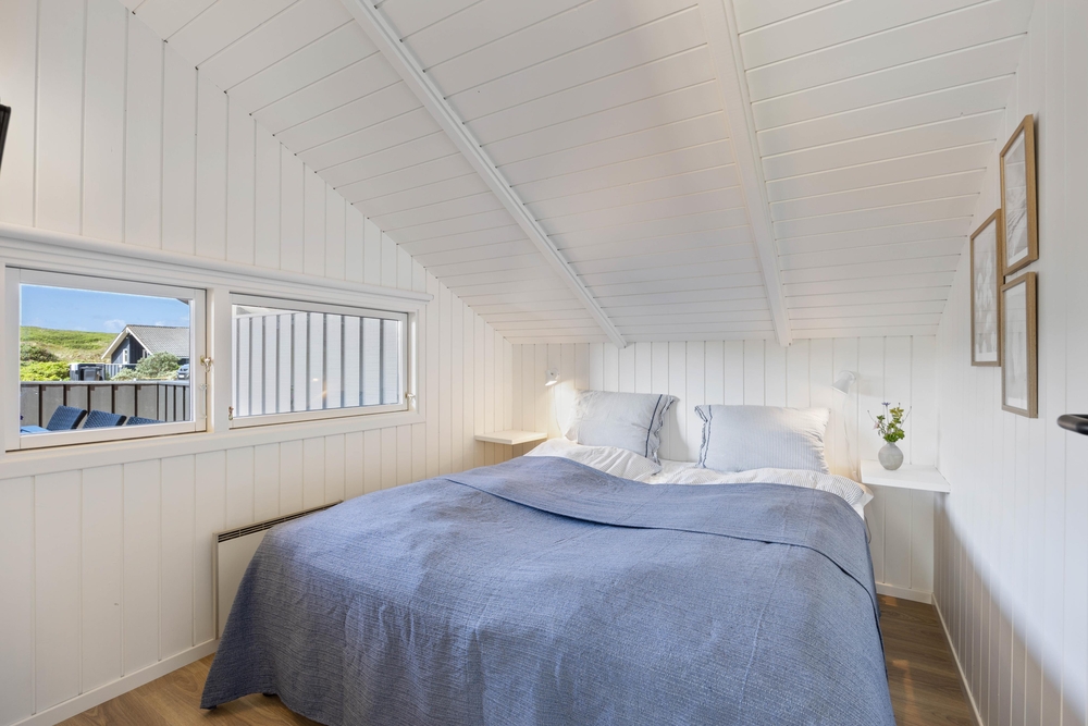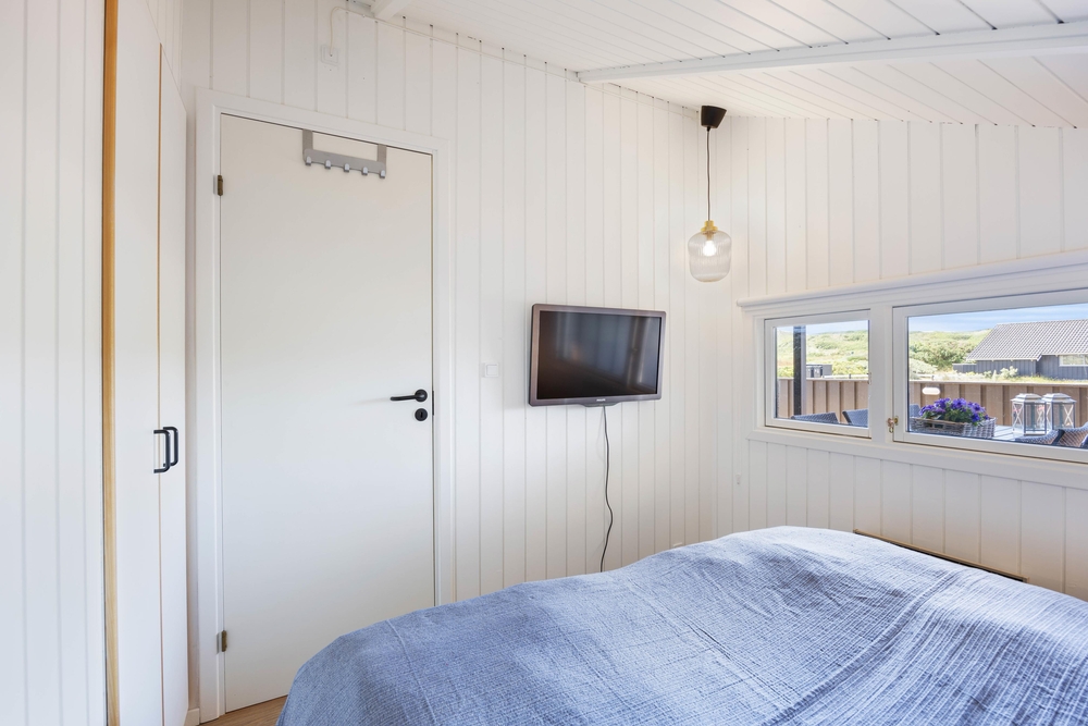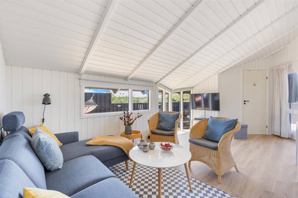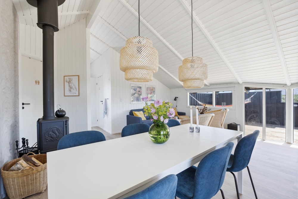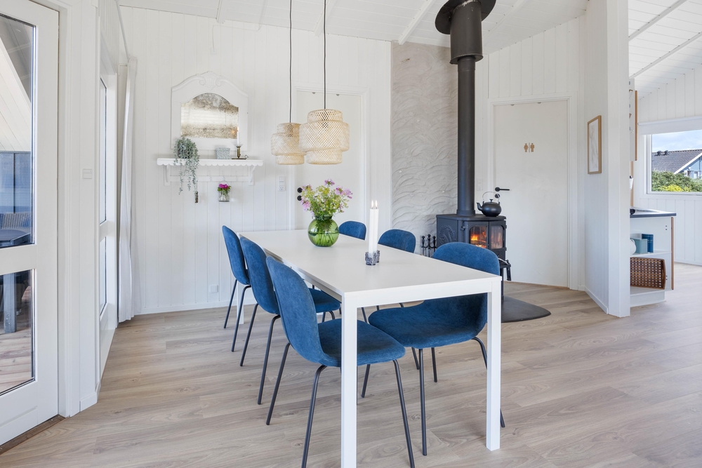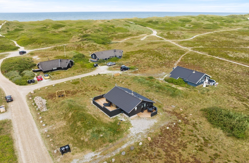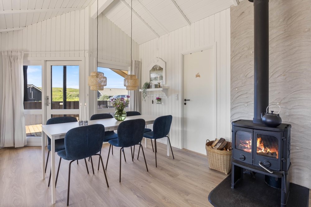 På Arvidvej 76 venter et 70 kvadratmeter lækkert feriehus, som er blevet renoveret i 2023. Her kan op til 6 feriegæster holde en skøn ferie med gode faciliter såsom spa, sauna og brændeovn. Herfra er der kun 150 meter til Vesterhavet, og desuden er familiens firbenede ven velkommen.