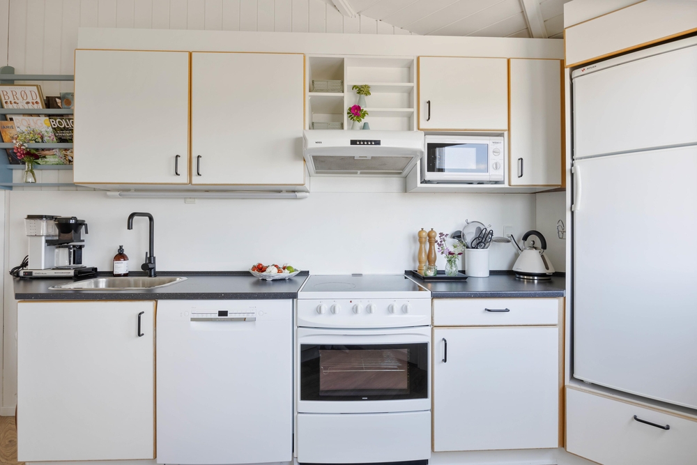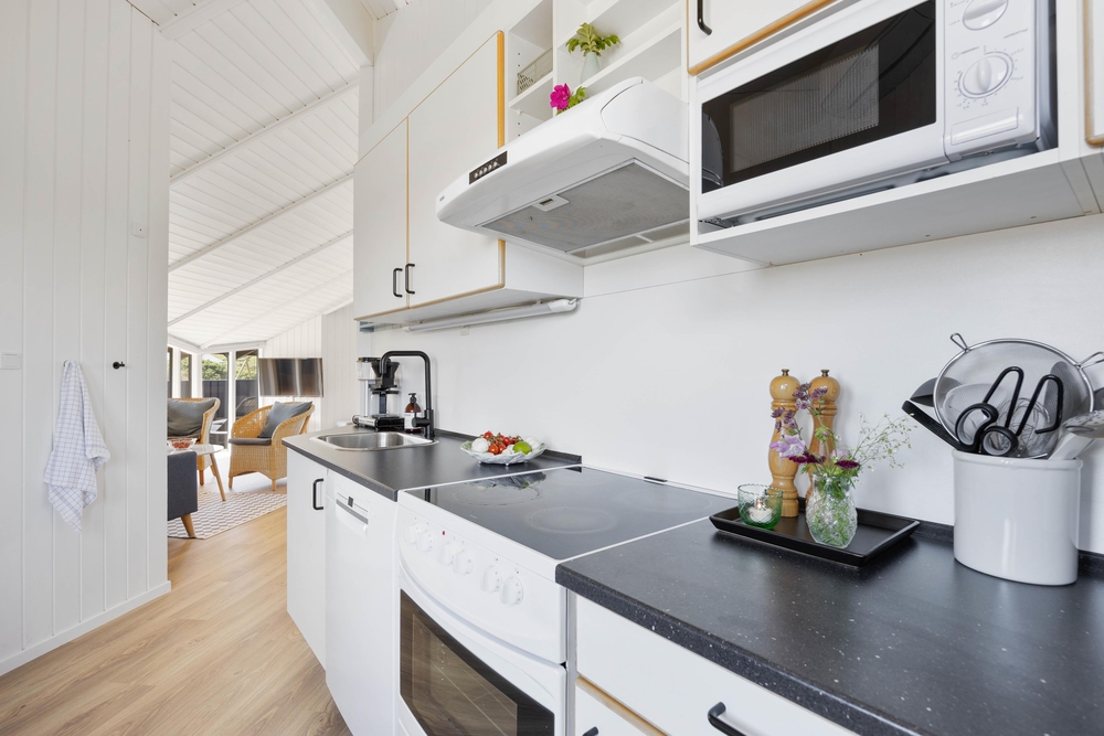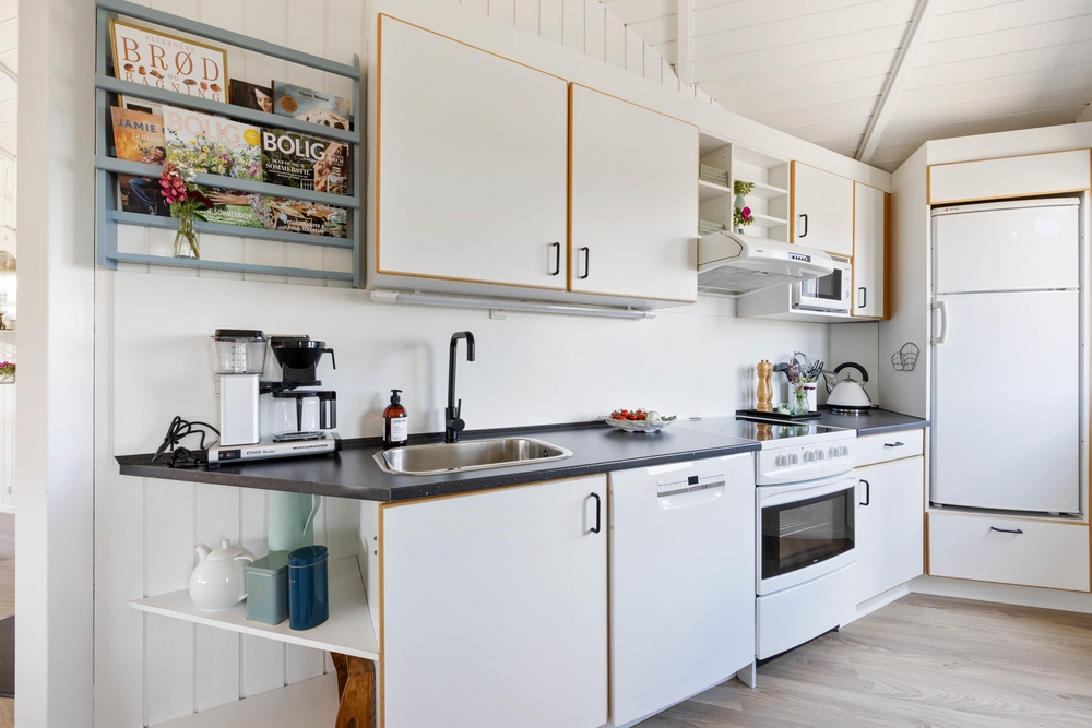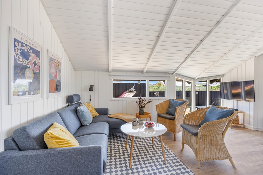 Hjerterummet her er nemlig stuen, hvorfra der er åbnet op ind til køkkenet. Her kan I tilbringe mange timer sammen og sammen hver for sig, mens nogen tilbereder et lækkert måltid i det funktionelle køkken, der bliver spillet brætspil og en tredje læser sin yndlingsbog med benene på sofaen. I den bløde sofa kan I sætte jer godt til rette med den gode bog, film eller spille det sjoveste spil på sommerhusets Play Station 4 ? det er ferie!