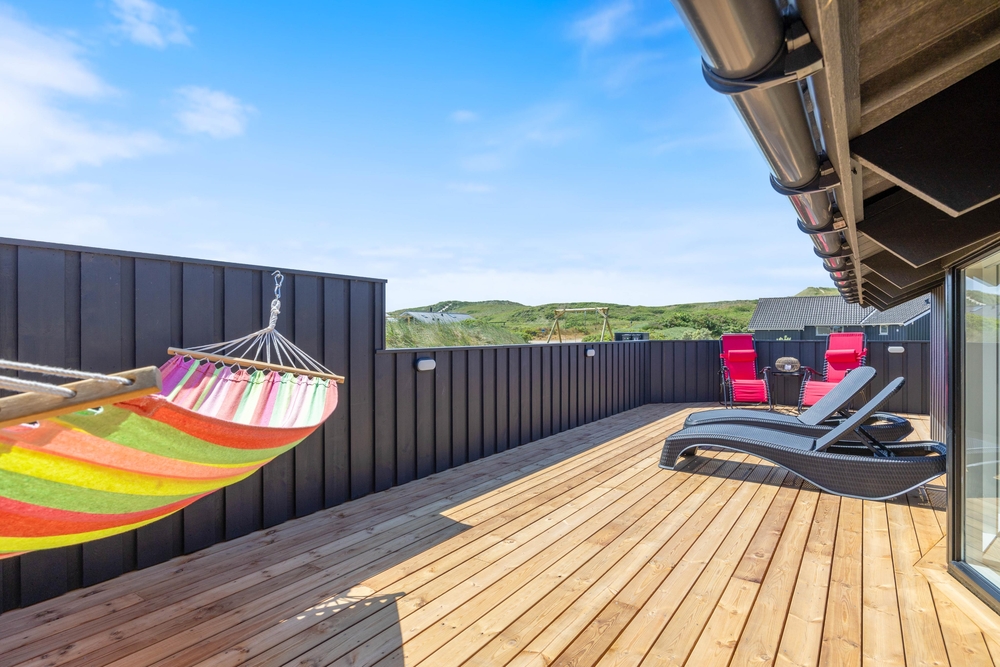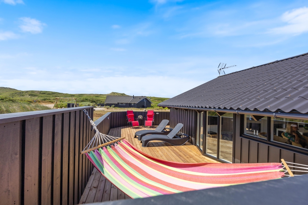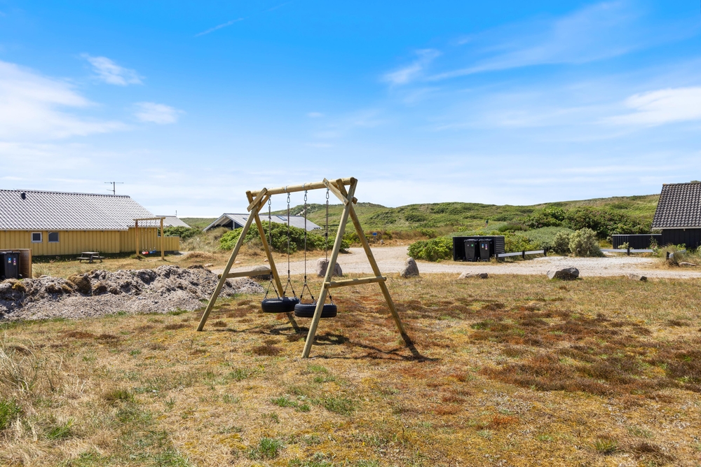 Lyt til lyden af det nærliggende Vesterhav og nyd den friske havluft, mens børnene leger på gyngerne eller spiller fodbold på den store grund. Takket være grillen kan I afslutte den perfekte ferie med en hyggelig grillaften, mens solen går ned bag klitterne.