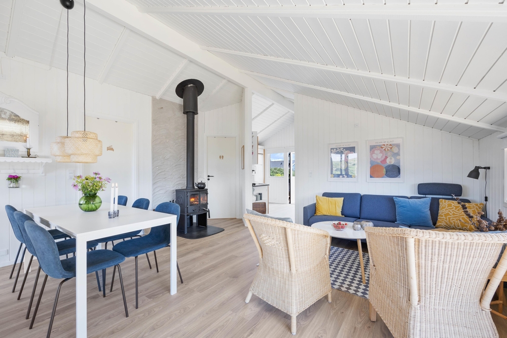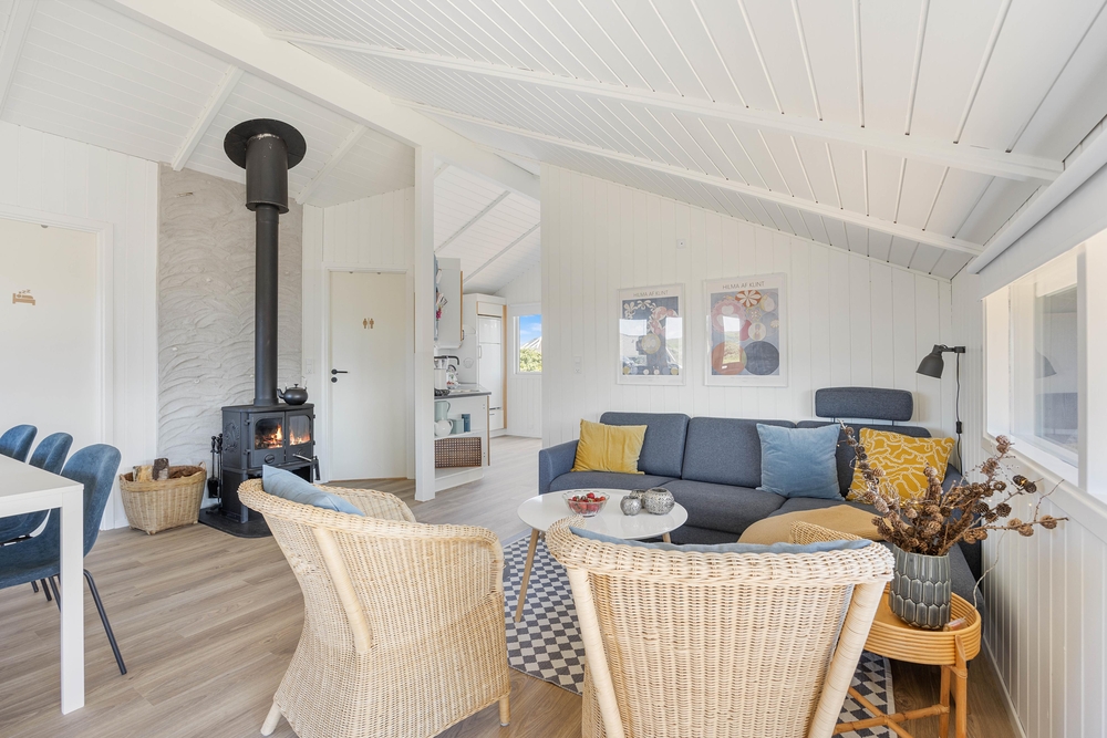 I dette skønne feriehus vil I hurtigt kunne føle jer hjemme! Afstemte farver, komfortable møbler og den knitrende brændeovn skaber et stemningsfyldt feriehus, hvor man kun har lyst til at nyde tiden med venner og familien ? om det er med kortspil, Play Station eller wellness er dog helt op til jer.