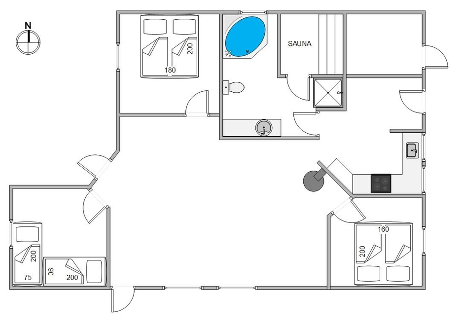 Udover at slappe af på sofaen, har I her mulighed for at forkæle jer selv med lidt luksus, hvor den står på wellness og afslapning i sommerhusets badeværelse. Her er sauna til rådighed til omfattende saunagus og efterfølgende kan I også slappe af i det boblende varme vand i spaen, mens I får ladet batterierne op langt væk fra hverdagen.