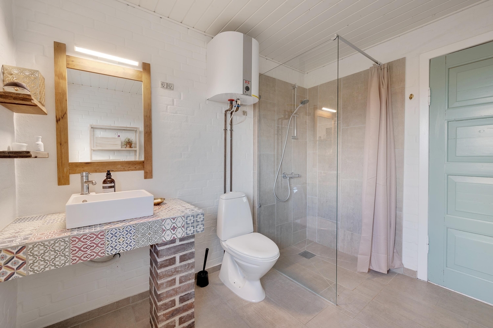 En forfriskende tur under udebruseren kan i nyde om sommeren eller bare få skyllet fødderne for strandsand. Udebruseren kan benyttes fra april til november.