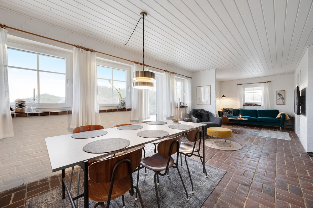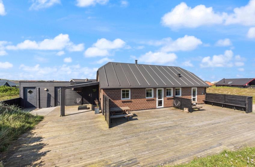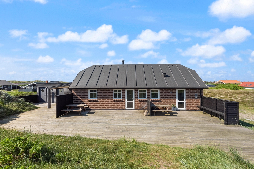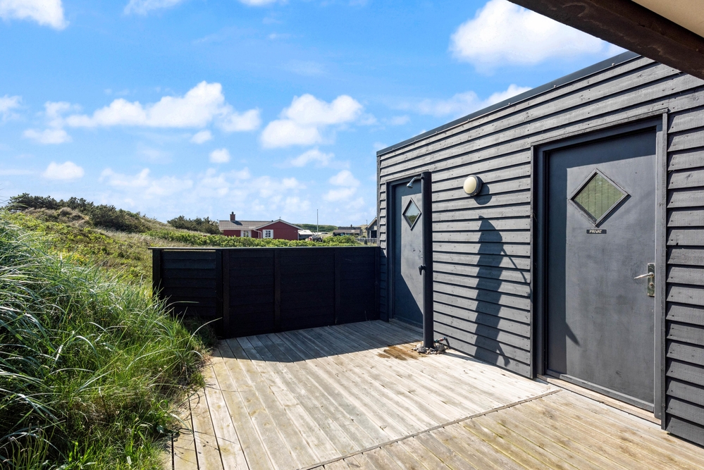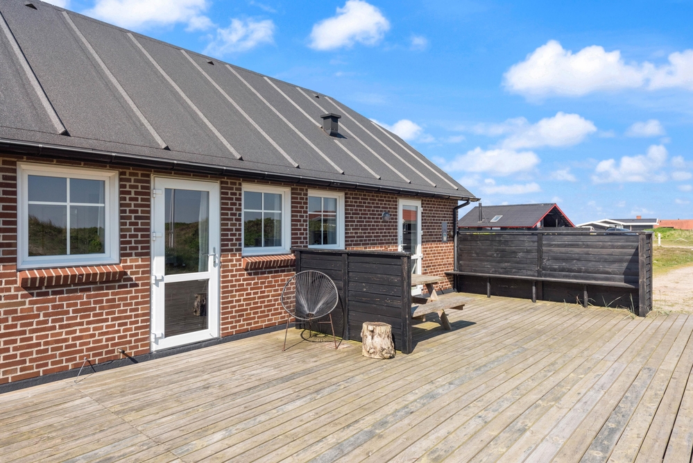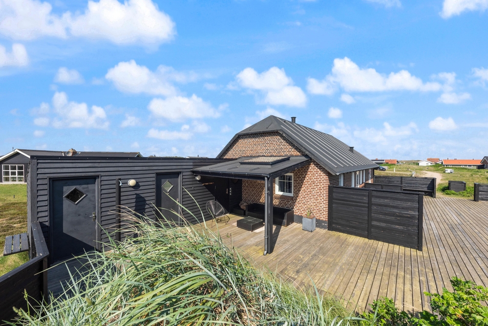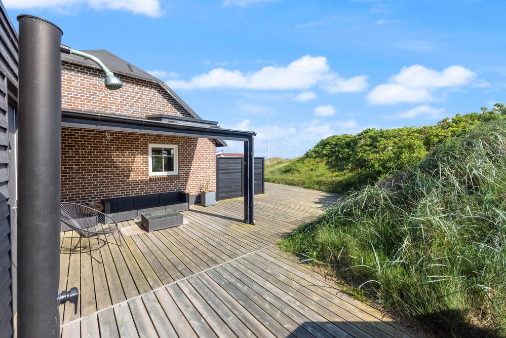 Fra den 130 m2 store terrasse, som blev bygget i 2017, kan du nyde udsigten til det fredede naturareal med både klitter og hede, som kendetegner landskabet langs Vesterhavet.