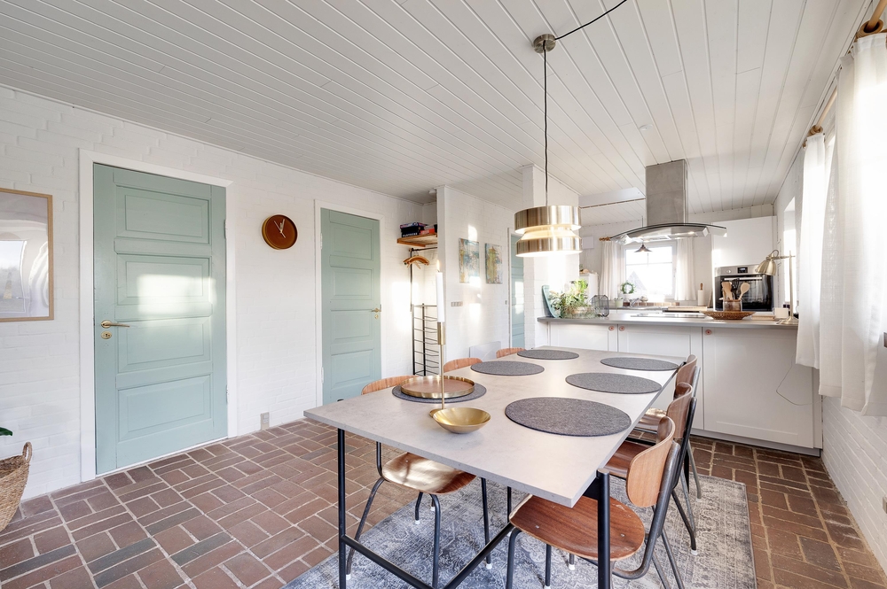 Det flotte lyse køkken er åbent, så der er plads til madlavning i fællesskab eller bare mulighed for at følge med i, hvad børnene laver, mens du forbereder livretterne.