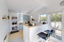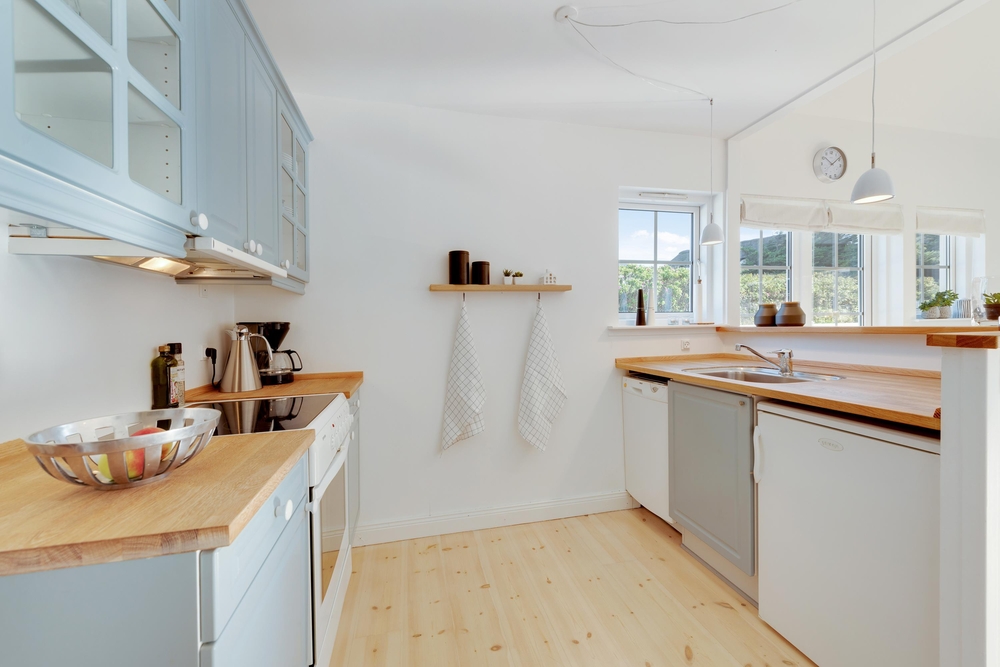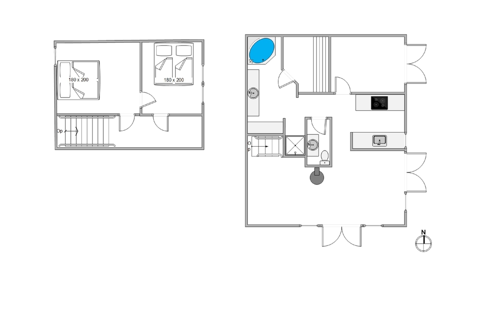 Den lille feriebolig på Badevej 20 D råder over to etager. Nedenunder finder I fællesrummet med køkken, spiseafdeling og sofahjørne, mens de 2 gode soverum er placeret på første etage.