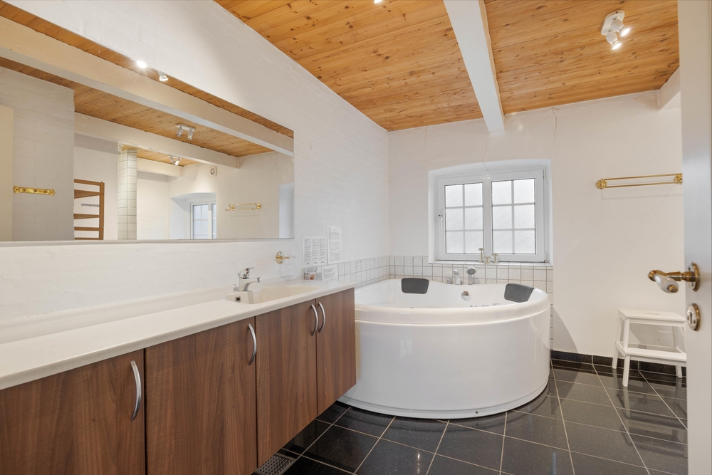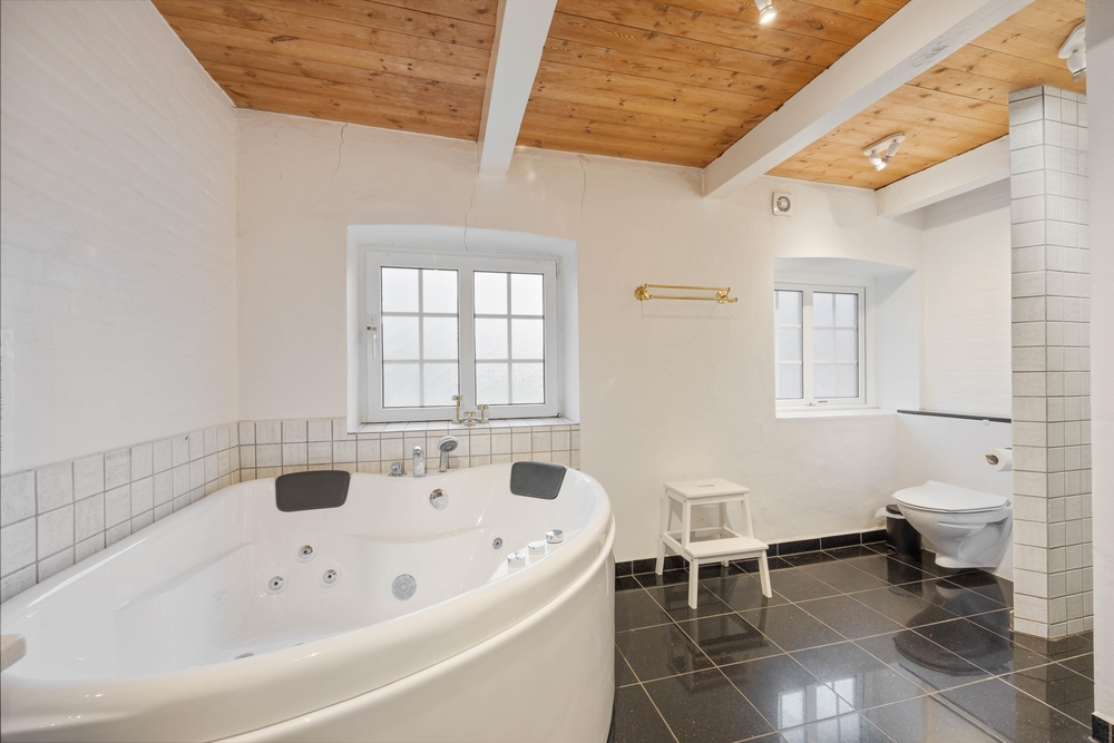 Ud over badeværelset er der også et gæstetoilet i feriehuset, så der ikke er trængsel foran badeværelset om morgenen. Spaen på badeværelset giver en ekstra dosis afslapning i feriehuset. Om aftenen kan I i feriehusets 4 soveværelser få en god nats søvn og få ladet batterierne op igen til en ny dejlig dag. 3 af soveværelserne er indrettet med en dobbeltseng, mens det sidste soveværelse har en dobbeltseng og en køjeseng.