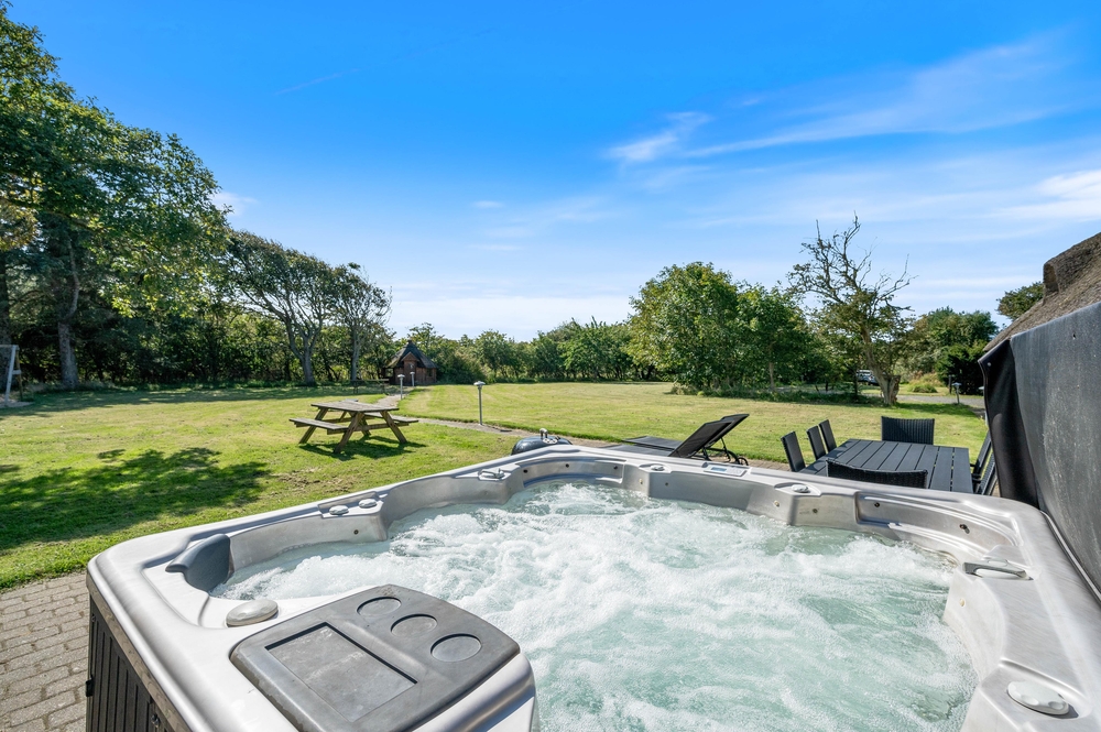 Feriehuset på Bækbyvej 121 i Vester Husby ligger på en plænegrund på ca. 10768 m2, som giver børn og hunde masser af plads til at lege og løbe rundt på. Mens de små leger og klatrer i legetårnet, kan I sætte jer til rette på terrassen og nyde solen og det gode vejr, mens I får et glas koldt at drikke. Om aftenen kan I runde en begivenhedsrig dag af med en hyggelig grillaften eller sætte jer i det lille havehus, som er udstyret med pejs. Et særligt højdepunkt er det udendørs boblebad, som er særligt behageligt med en smuk udsigt til stjernehimlen.