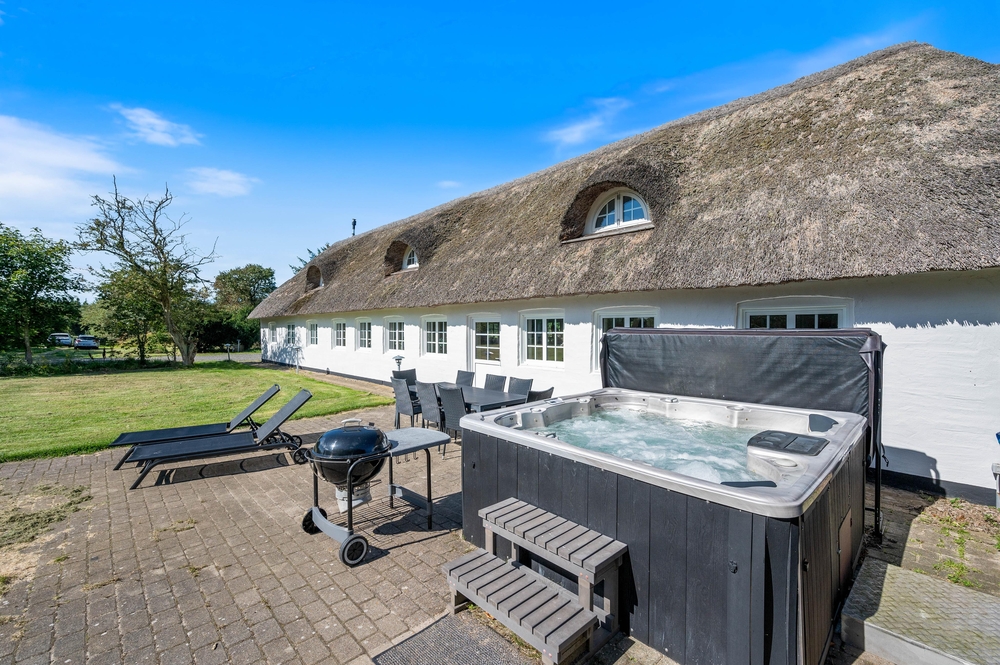Hvis I er på udkig efter et hyggeligt, klassisk stråtækt feriehus med masser af aktiviteter, så er feriehuset på Bækbyvej 121 i Vester Husby en god mulighed for jrt. I dette aktivitetshus er der god plads til en ferie med op til 10 personer, og jeres 2 hunde er også meget velkomne. Feriehuset er udstyret med poolbord og bordfodbold, så der er masser af aktiviteter, når vejret ikke er så godt. Hvis I ønsker afslapning, vil I elske boblerne og varmen fra spabadet og udespaen. Hvis I ankommer med elbil, kan I oplade den direkte ved feriehuset og behøver ikke at bekymre jer om et tomt batteri.