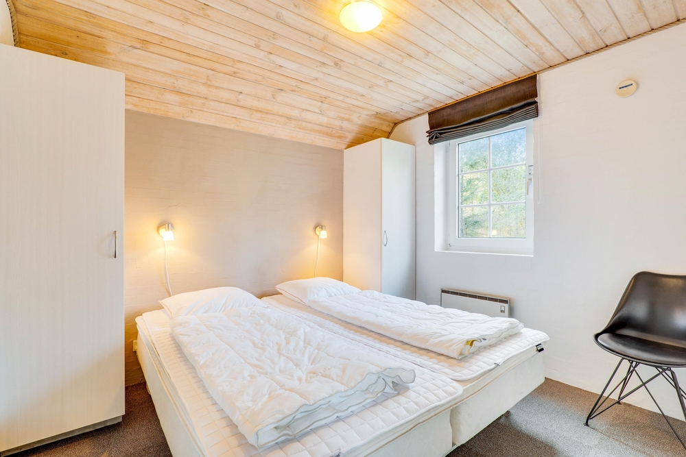 Sommerhuset opvarmes af en energisparende varmepumpe, som er med til at holde jeres forbrugsafregning nede. At sommerhuset derudover også er udstyret med både en separat fryser, vaskemaskine og tørretumbler er et stort plus. Så slipper I for at pakke så meget og for at skulle vaske tøj i to dage, når I kommer hjem igen. I det ene værelse er en foldudseng, som måler 2x80x200 cm, og som kan bruges både som enkelt eller dobbeltseng.