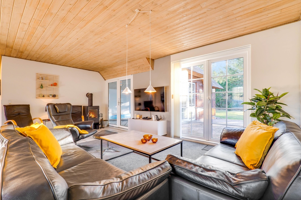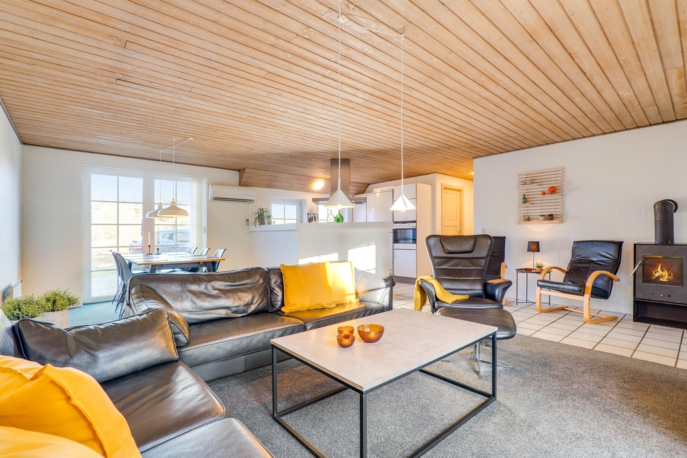 Når I tænder op i brændeovnen i stuen om aftenen, sænker roen sig efter en god og aktiv dag i den Vestjyske natur.