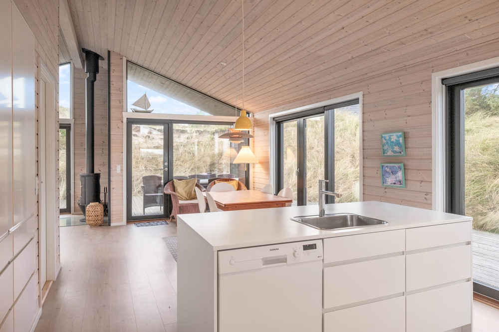 Beliggenheden er det ikke den eneste fordel ved feriehuset. Det er også rigtig dejligt indrettet, så det er indbydende, familievenligt og helt perfekt til en ferie med fokus på samvær, kvalitetstid og afslapning.