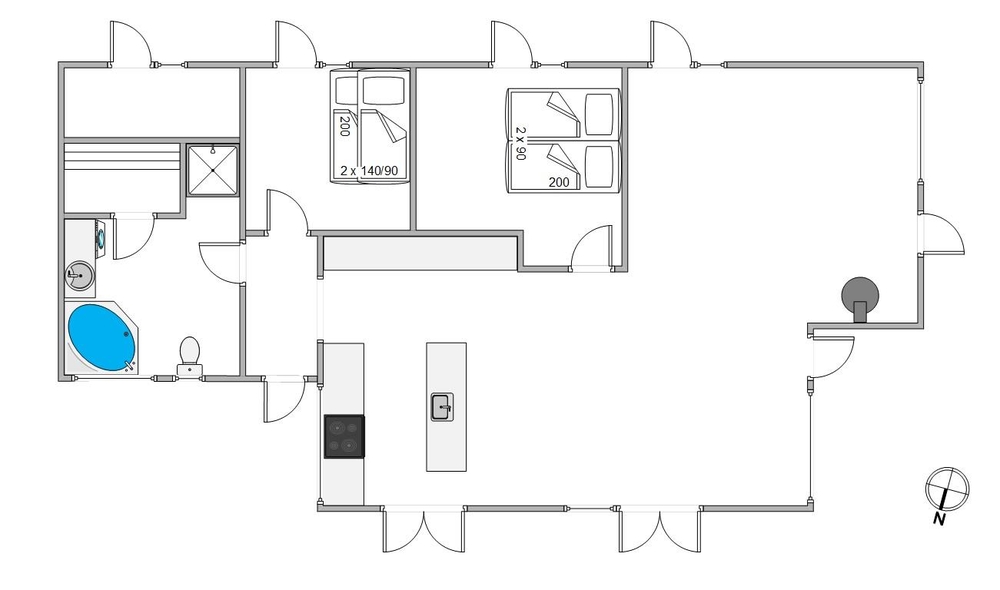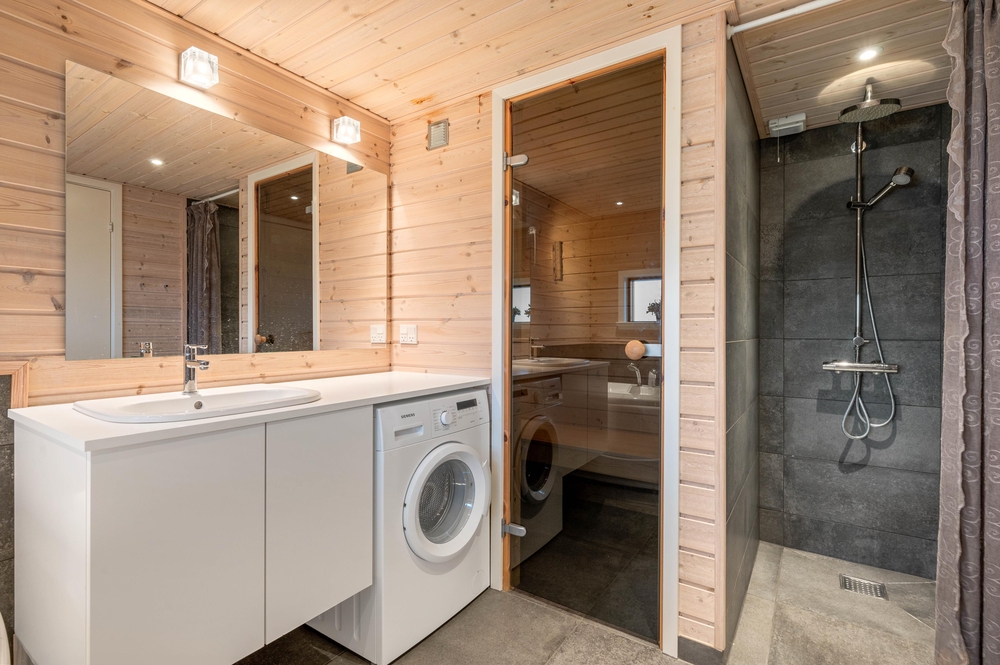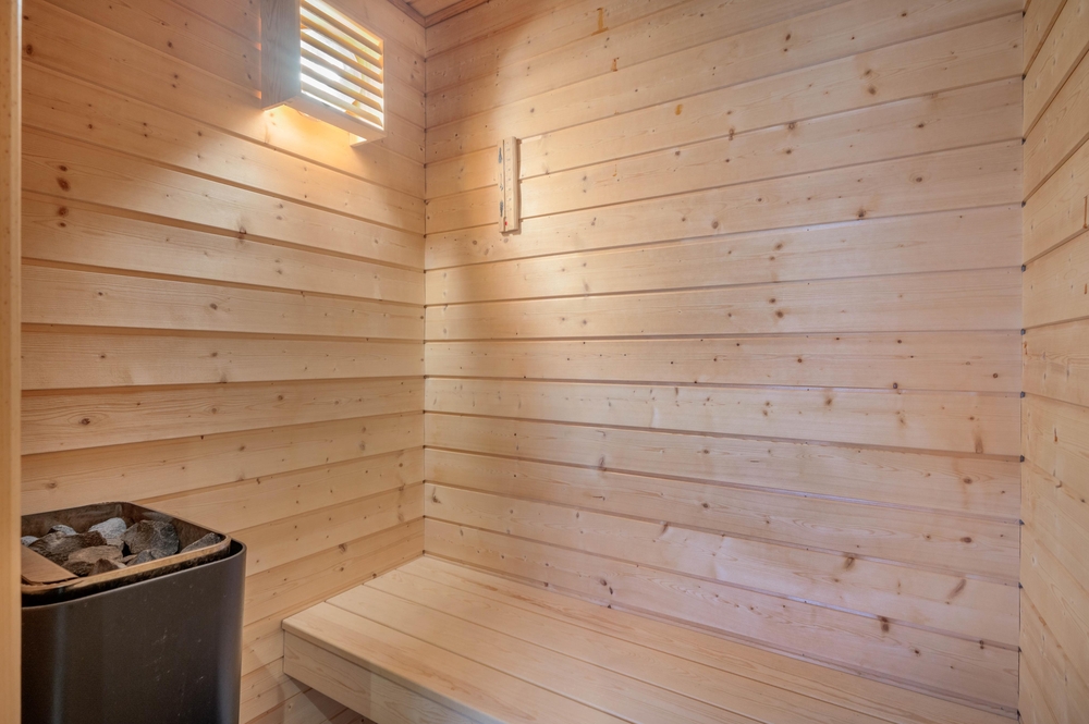 På badeværelset har du også en sauna og et spabad, som er helt perfekt, hvis du trænger til lidt selvforkælelse. Her får varmen og feriestemningen krop og sind til at slappe helt af.