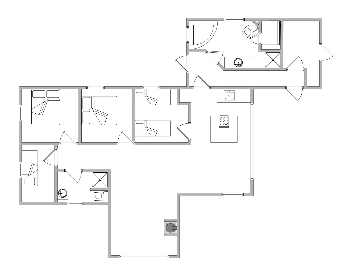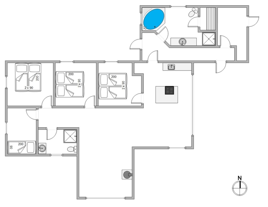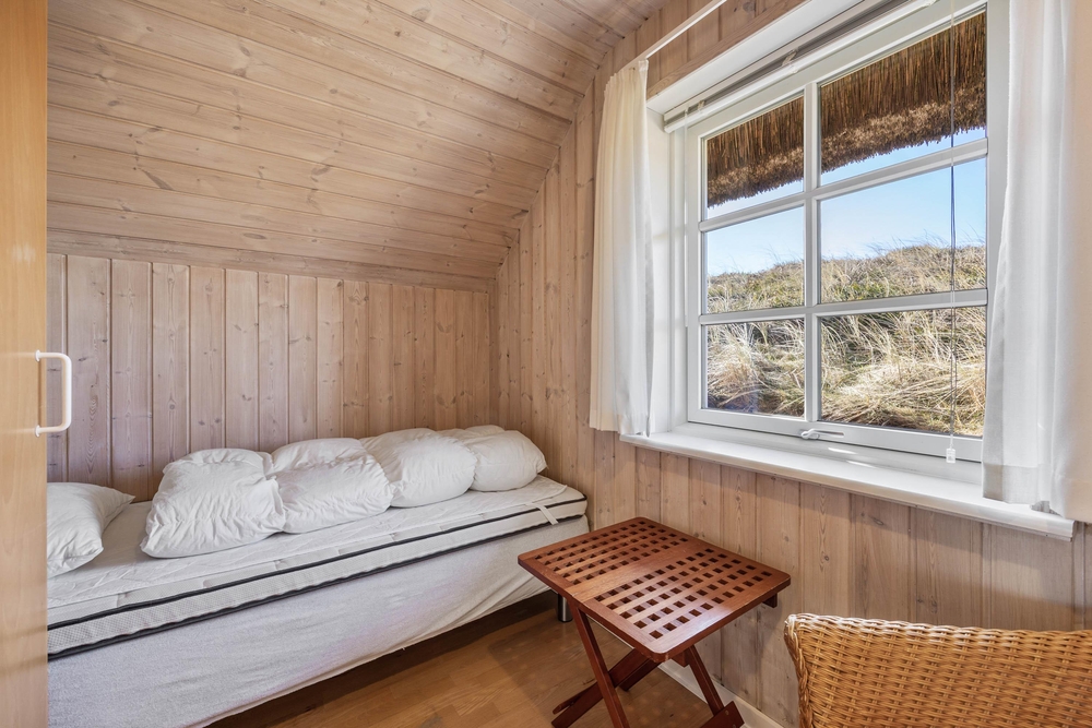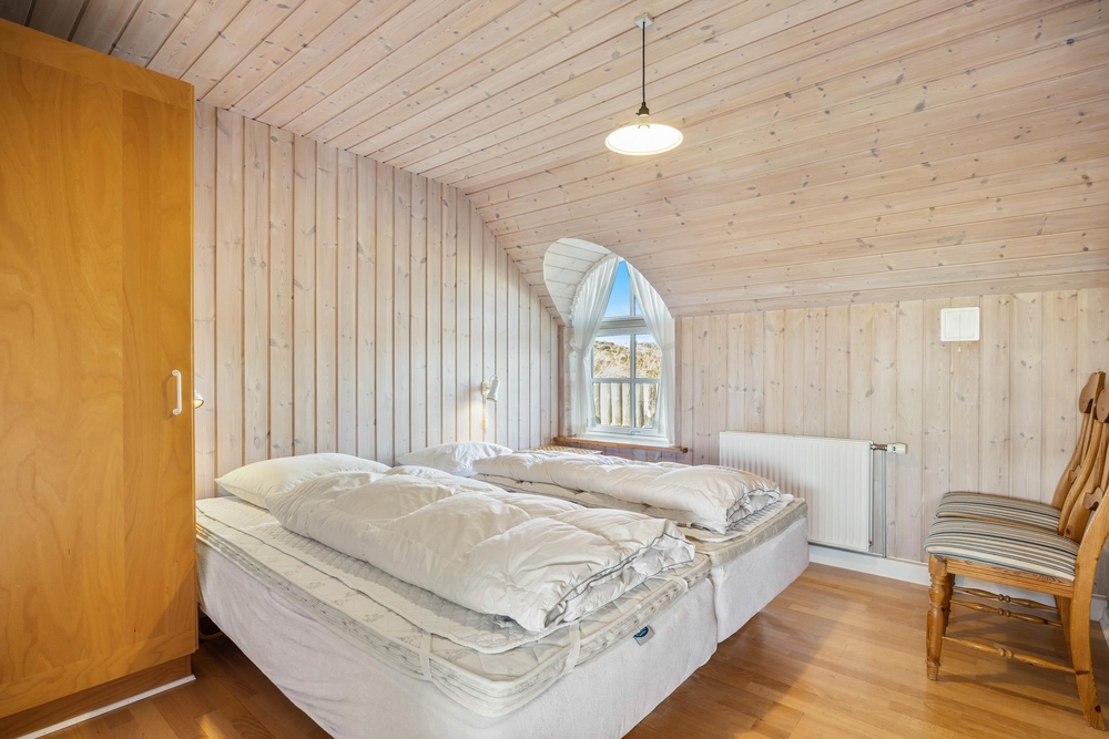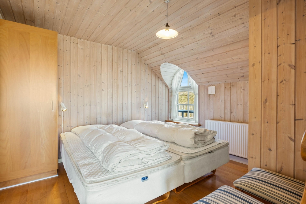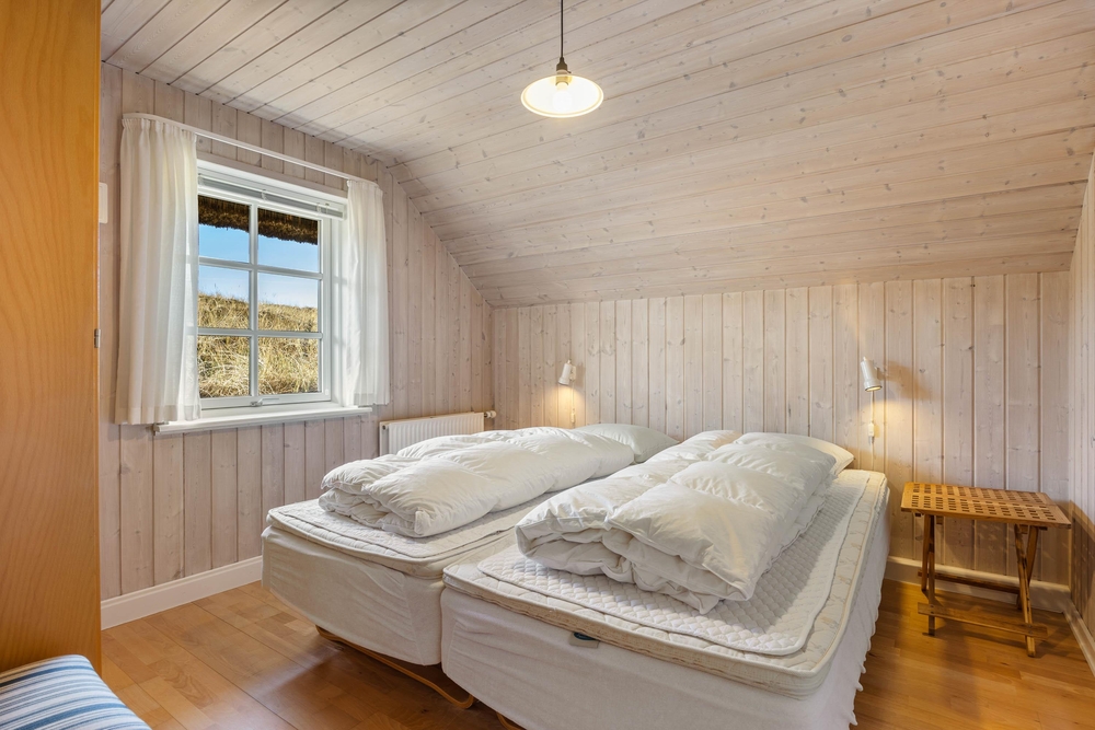 Sommerhuset har 4 gode soveværelser med boksmadrasser og trægulve.