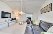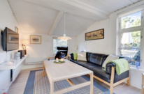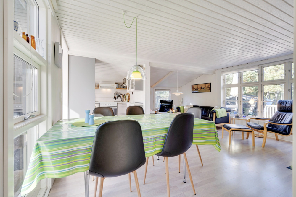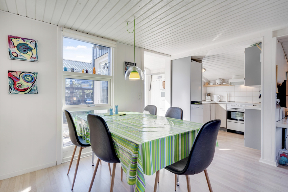 Sommerhusets lyse og moderne indretning gør, at I straks vil føle jer godt tilpas. Den lyse og velindrettede stue ligger i forlængelse af den fine spisestue. Sommerhusets køkken er veludstyret, og her er både opvaskemaskine samt et praktisk køleskab med fryseboks. Den hyggelige pejs vil sprede feriehygge og varme, imens den energibesparende varmepumpe sørger for en behagelig temperatur i alle sommerhusets rum.