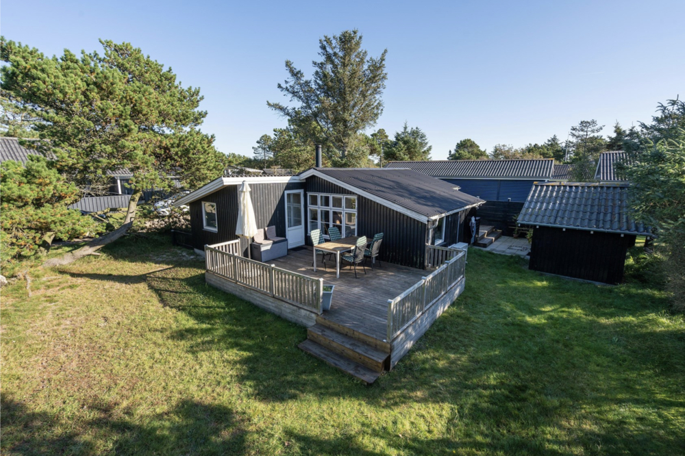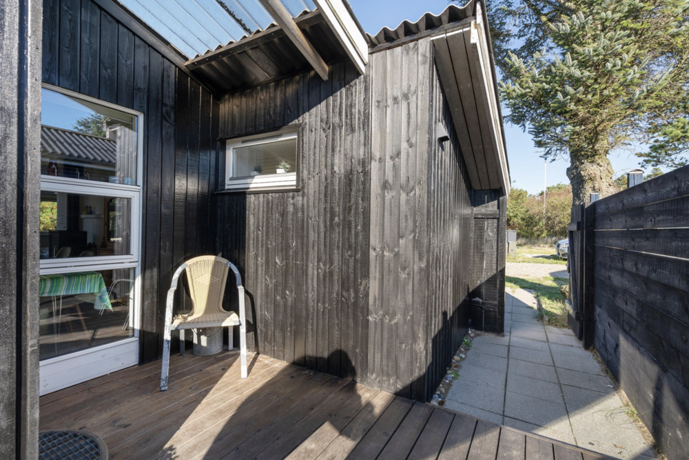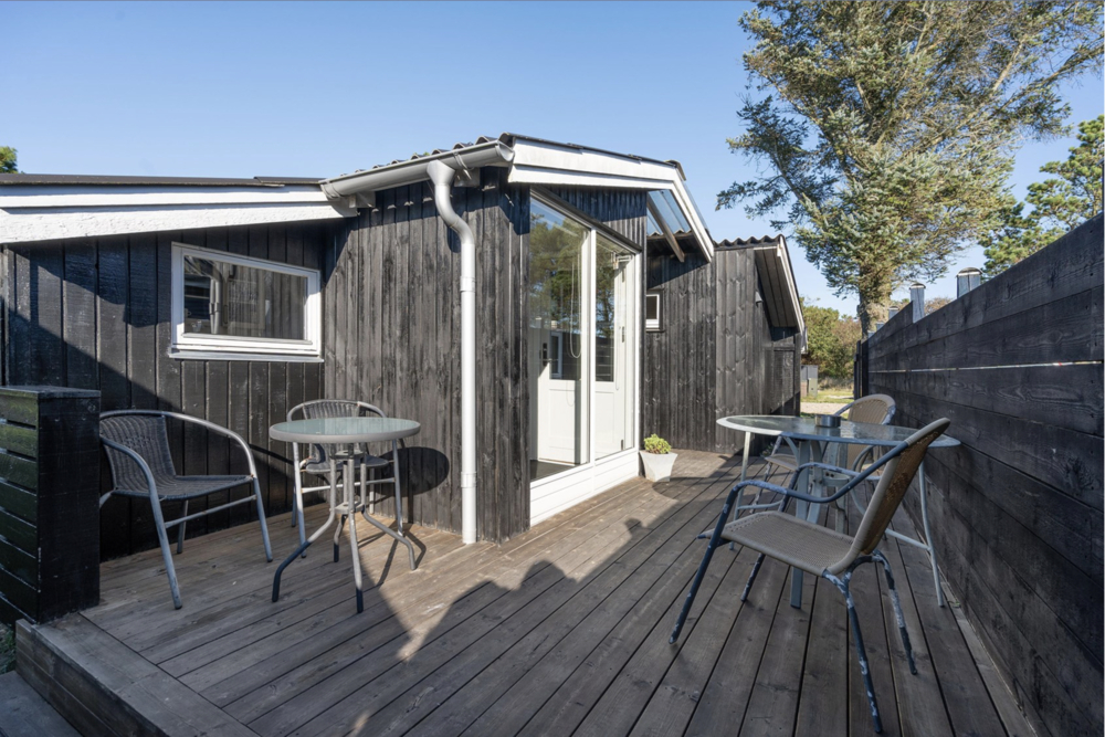 Fra stuen er der mulighed for at træde ud på den skønne sydvendte terrasse, hvor I om morgenen kan starte jeres feriedage med nybagte rundstykker og friskbrygget kaffe. Mens dagen går, kan I flytte til de komfortable havestole, der står til rådighed på de andre terrasser rundt omkring dette skønne sommerhus. Og imens de voksne nyder den friske (hav)luft fra terrassen, kan de små hygge sig med gyngerne, rutsjebanen og sandkassen, der er placeret i den ene ende af sommerhusets naturgrund.