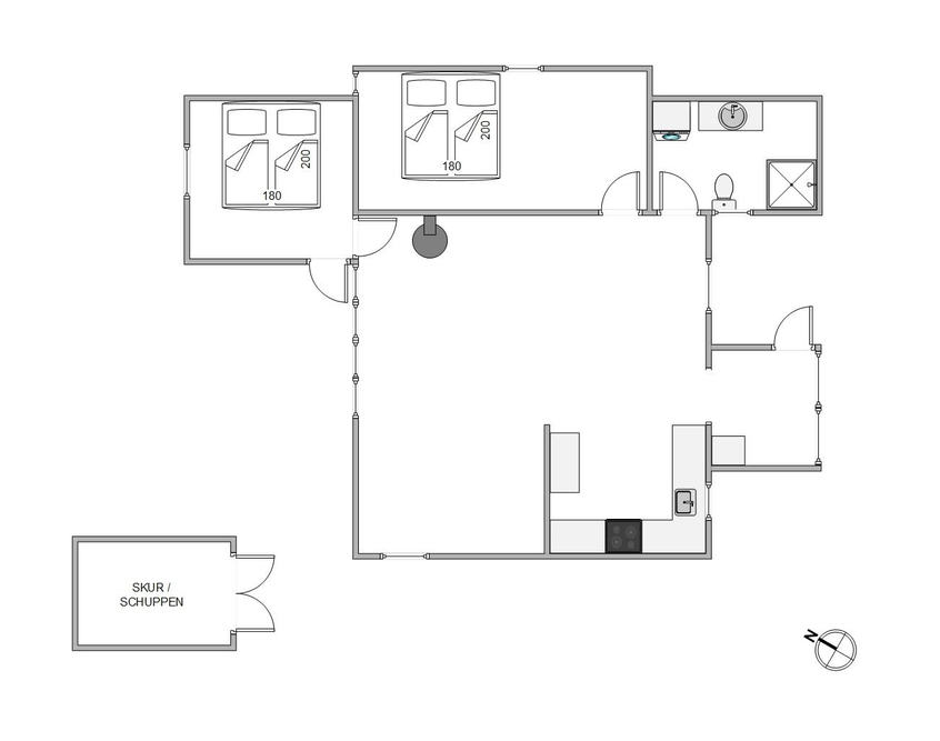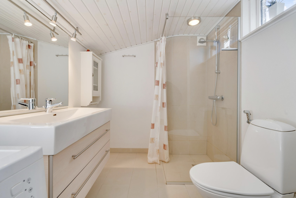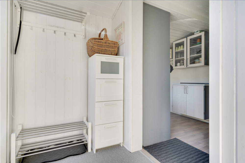 Sommerhuset råder over 2 lyse og rummelige soveværelser, som begge er udstyret med dobbeltsenge. På badeværelset, som har indlagt gulvvarme, befinder sig en vaskemaskine, som kan være jer behjælpelig med jeres ferievasketøj.