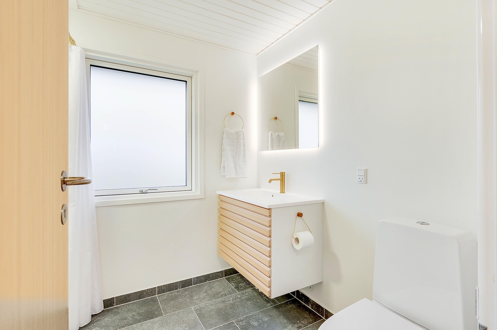 Sommerhuset er udstyret med en varmepumpe, som I med fordel kan bruge til at holde temperaturen i rummet behagelig.