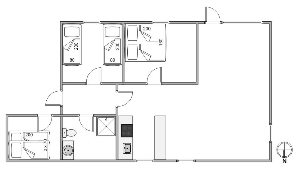 Efter en lækker middag ved det store spisebord, sikrer tre rummelige soveværelser en god nats søvn. Det ene er indrettet med dobbeltseng og et andet med køjeseng ? et hit blandt børnene. På det sidste værelse finder I 2 enkeltsenge.