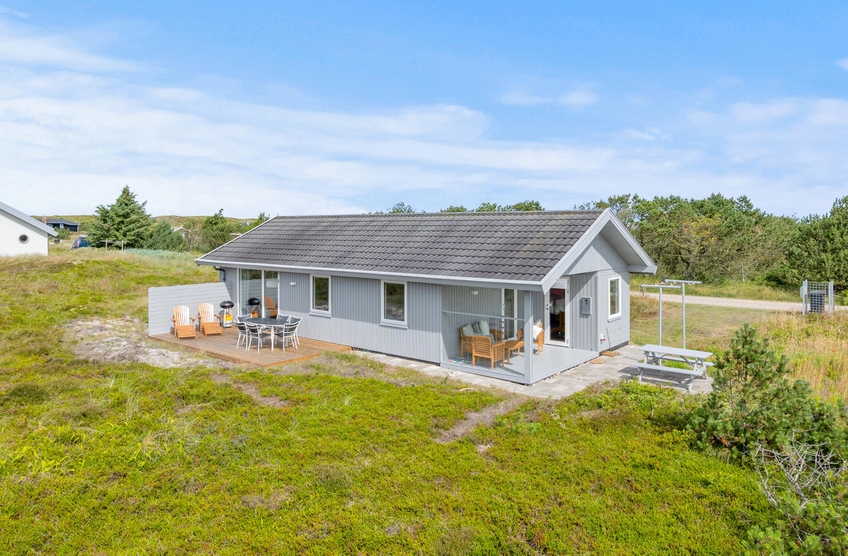 På det udendørs område ved det hyggelige sommerhus indbyder grillen og de komfortable havemøbler til en afslappet grillaften, mens solen går ned bag klitterne og afslutter den begivenhedsrige dag. Terrassen er delvist afskærmet, så I kan sidde i læ for vinden.