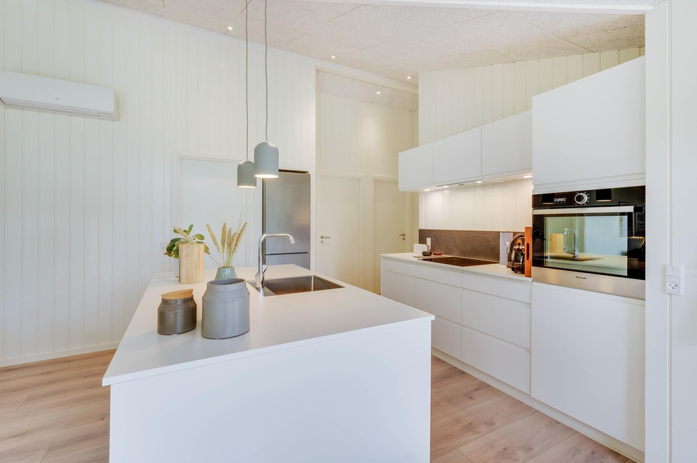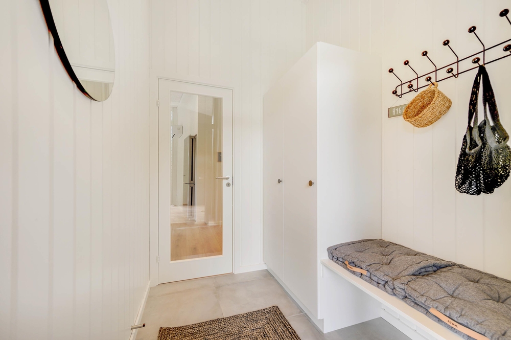 Naturligvis hører der både vaskemaskine og tørretumbler til huset. Det gør det nemt at pakke ferietøjet, uanset vejrudsigten. En varmepumpe er med reducere energiforbruget i huset.