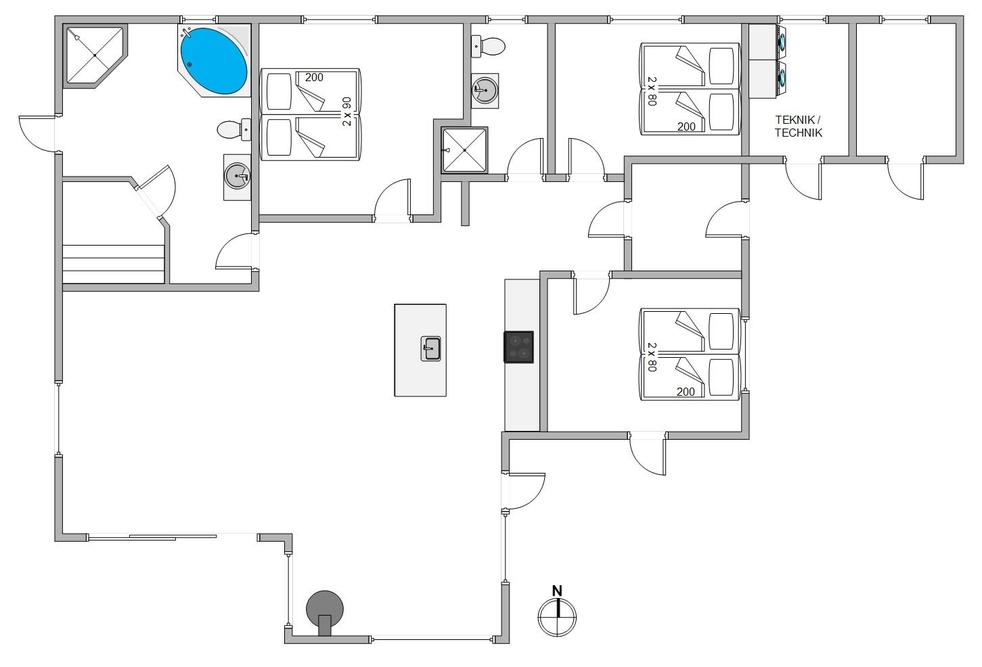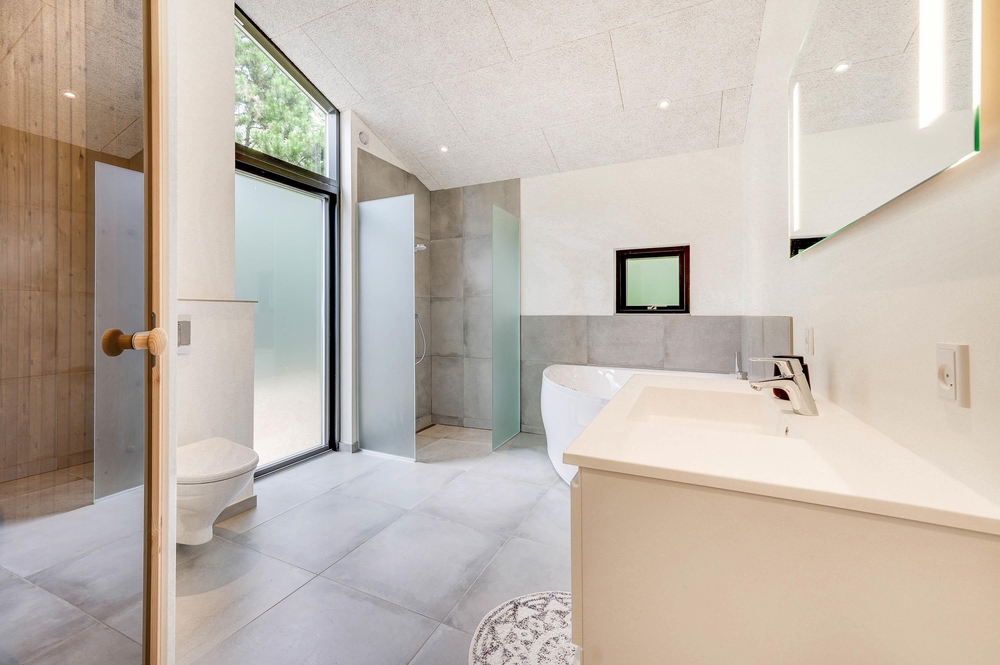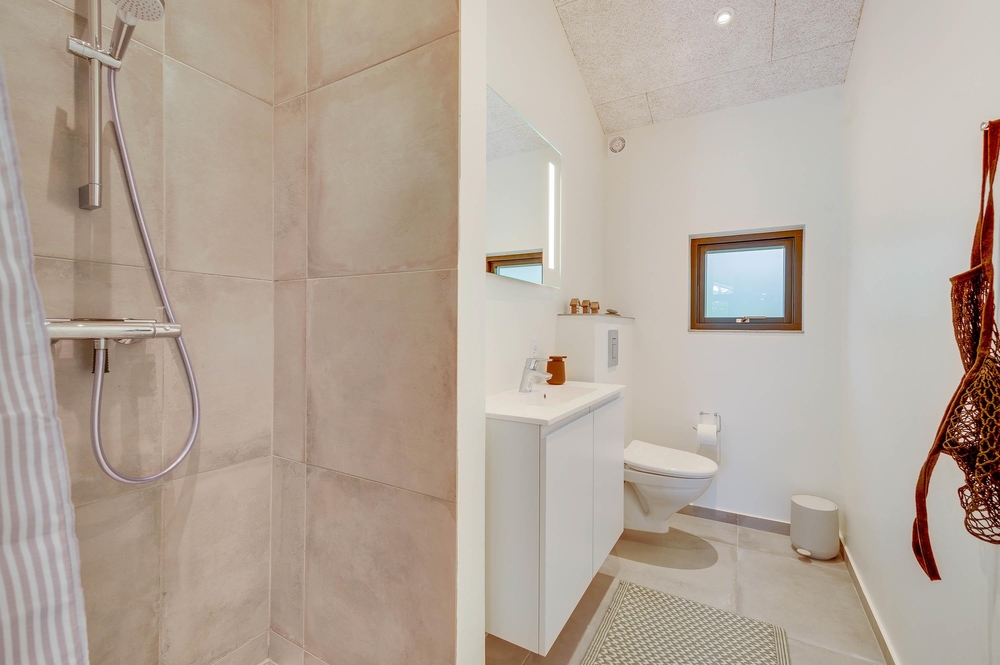 Med de 2 flotte og praktisk indrettede badeværelser er huset velegnet til 2 familier. Det ene badeværelse har desuden en dejlig wellness afdeling med spa og sauna, som inviterer til lidt forkælelse og velvære, ? måske efter en lang dag i den, til tider lidt barske, vestjyske natur.
