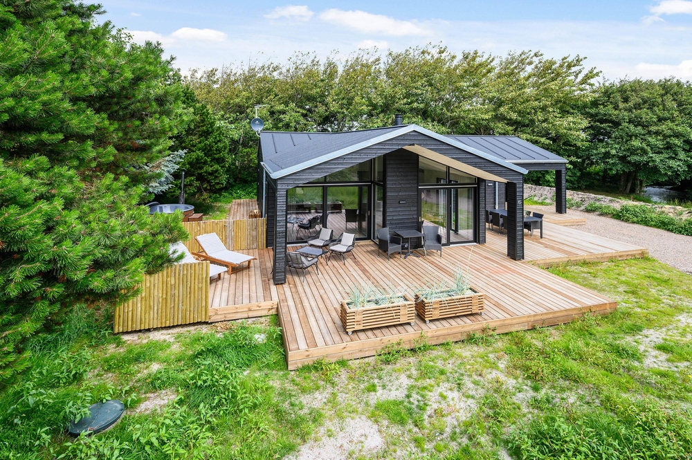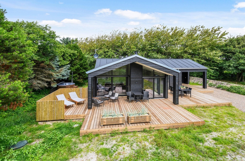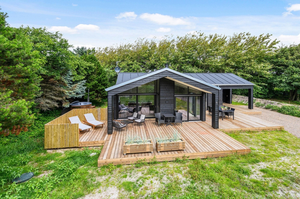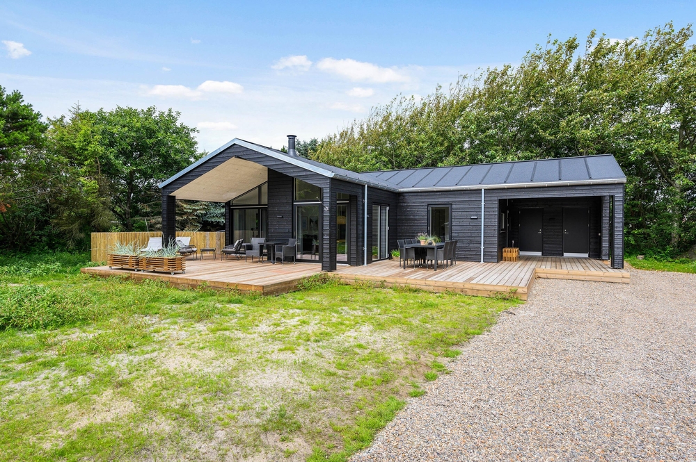 På en stor, lukket og ugeneret naturgrund på Bilbergsvej 6 A i Bjerregård, finder I dette lækre 116 m2 store feriehus, opført i 2020.