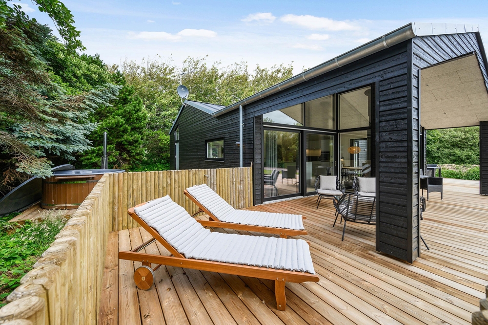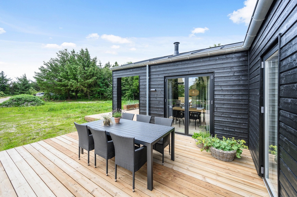 Nyd en veltilberedt grill-middag på terrassen, mens I ser solen farve himlen over klitterne purpurrød ? og stjernerne dukke frem. Det dufter af skov og hede og der hersker en dejlig stilhed når mørket sænker sig og fuglene går til ro.