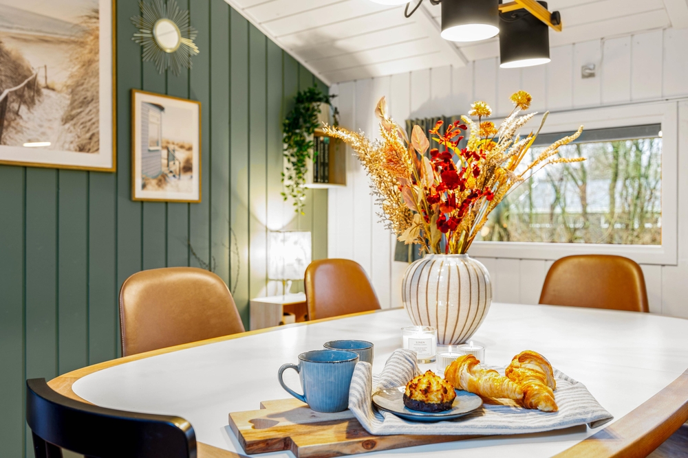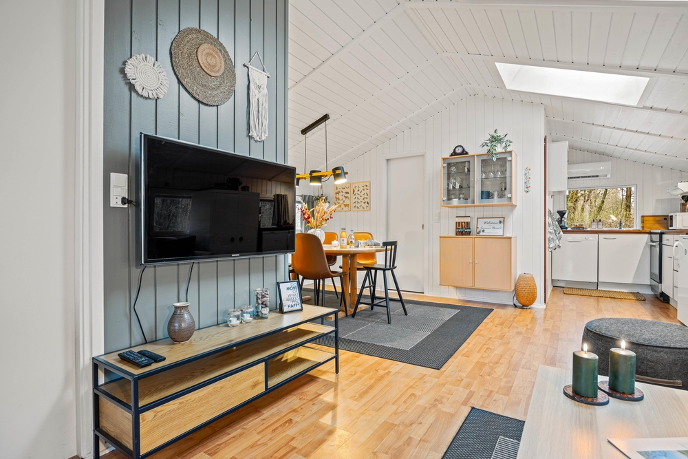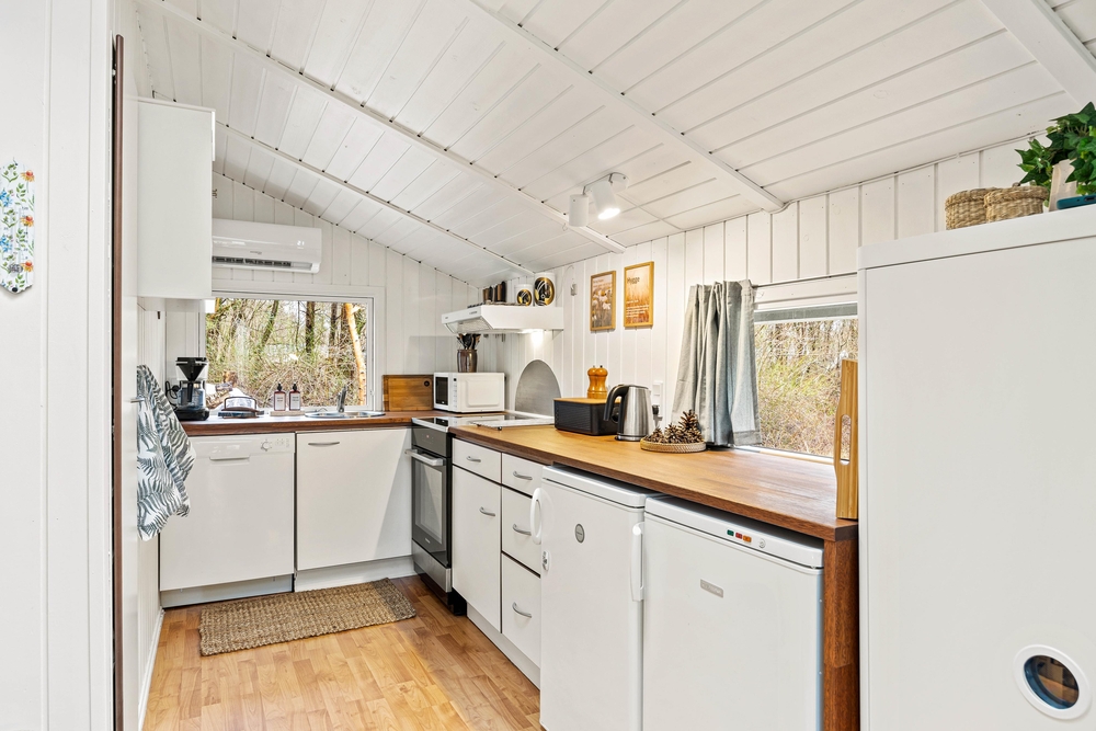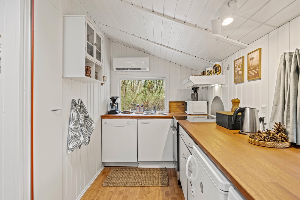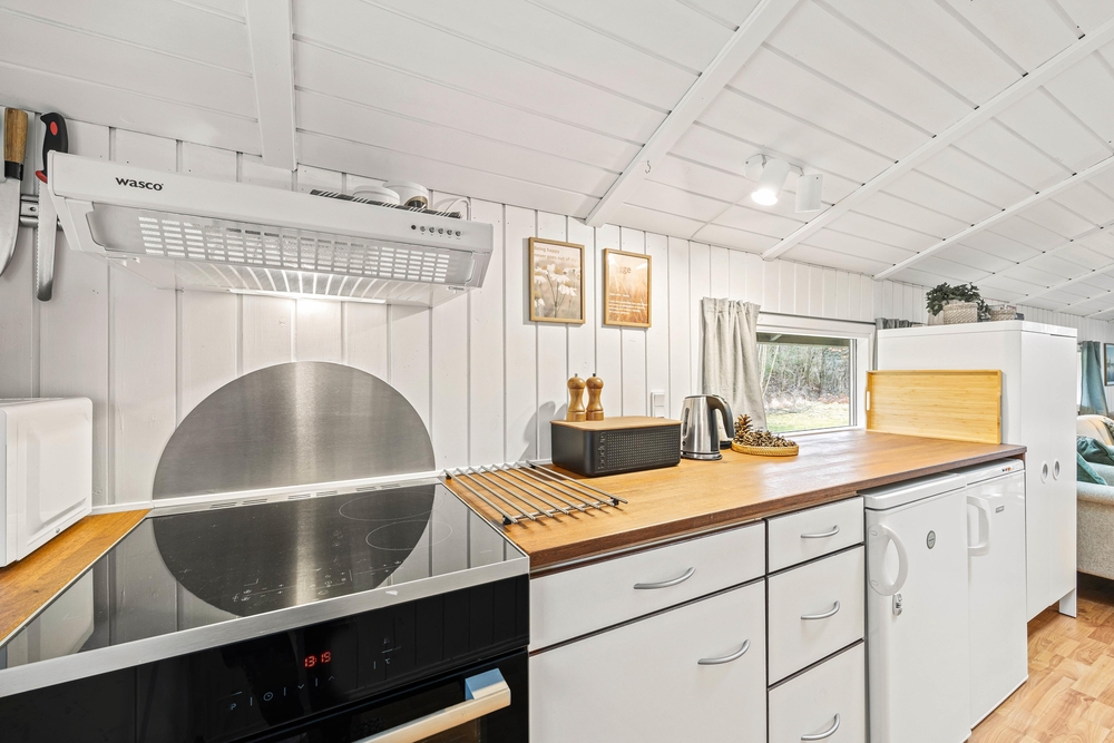 I køkkenet er der opvaskemaskine, så I slipper for at klare opvasken i hånden. Køkkenet ligger i åben forbindelse med både stue og spiseområde, så I har ét stort opholdsrum, hvor I alle kan opholde jer, selvom nogle spiller kort eller lægger puslespil ved spisebordet, og andre tilbereder aftensmaden eller læser en god bog i sofaen. I kan også benytte jer af feriehusets Chromecast, så I nemt kan streame jeres favoritter direkte på fjernsynet.