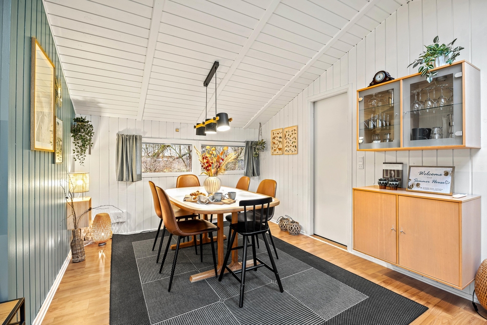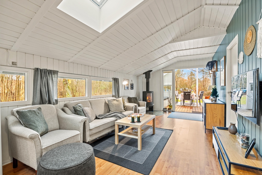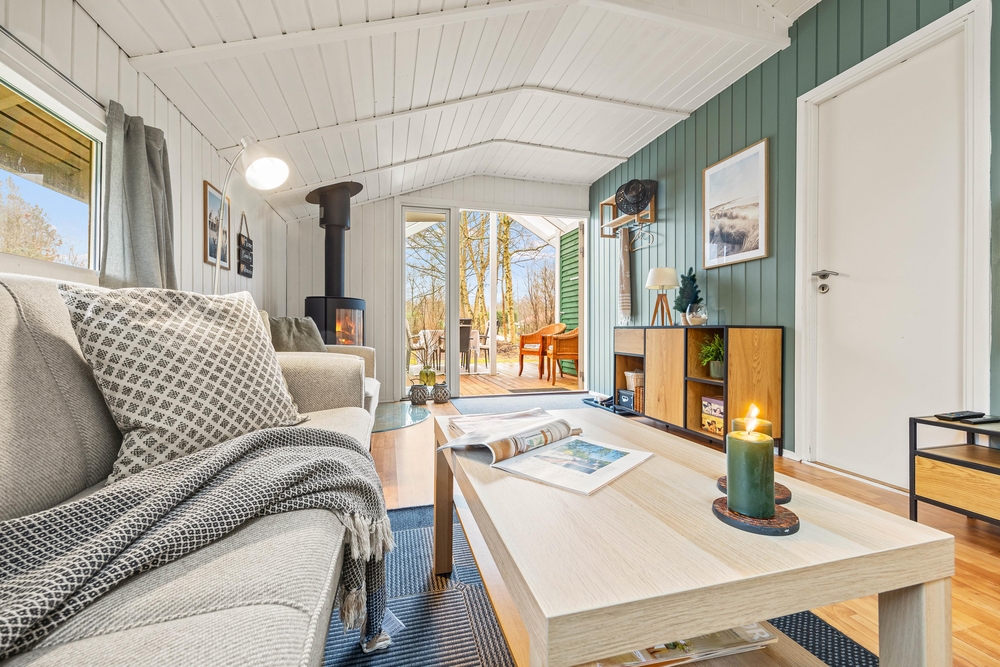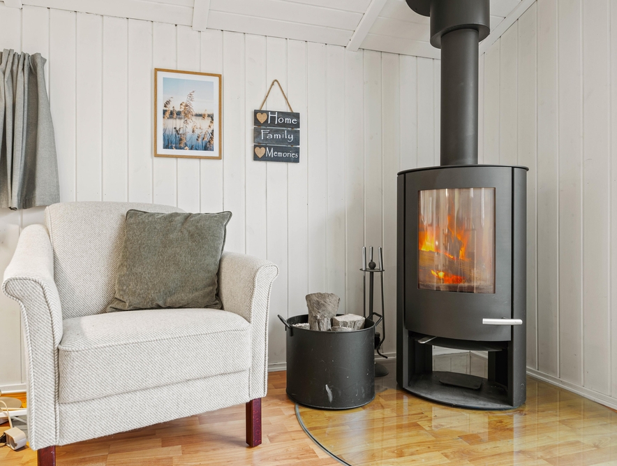 Brændeovnen i stuen skaber med sine dansende flammer den perfekte ferieatmosfære på de køligere dage. Når opvarmningen af sommerhuset skal gå hurtigt, kan I benytte jer af den energibesparende varmepumpe, som nemt og effektivt søger for god temperatur og godt indeklima.