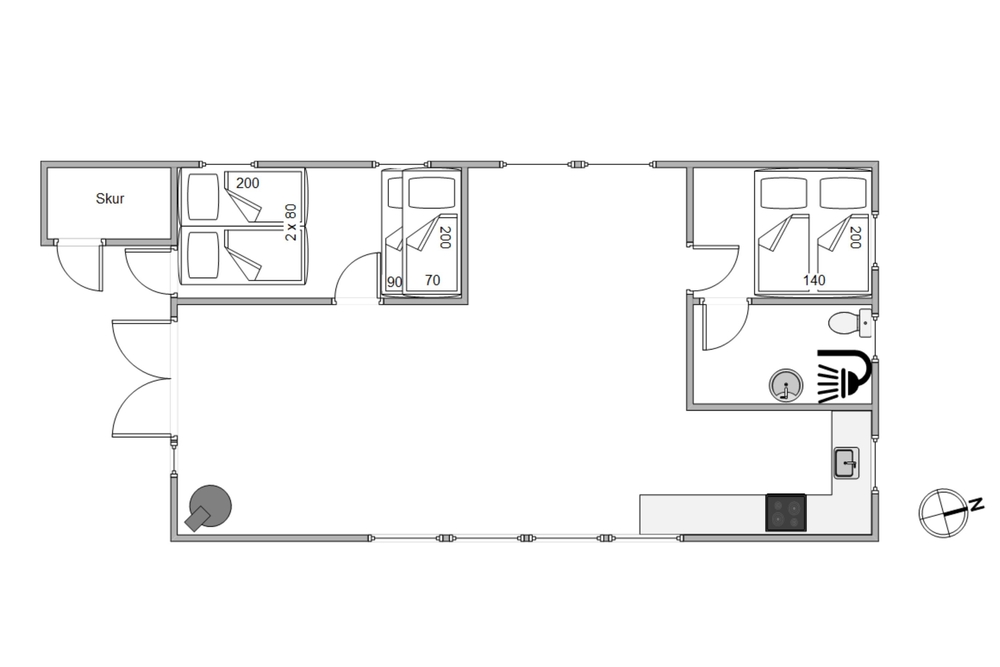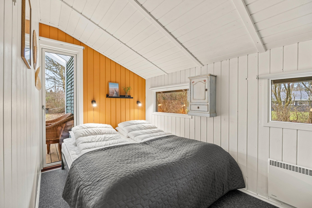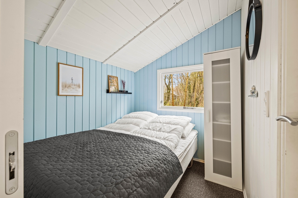 Sommerhuset, som gennemgik en stor renovering i 2023, er 64 m2 fordelt på blandt andet 2 værelser, hvoraf det ene er indrettet med dobbeltseng, og det andet med både dobbeltseng og en enkeltseng. Det er oplagt til børnefamilien, eller hvis I er et vennepar, der gerne holder ferie sammen.