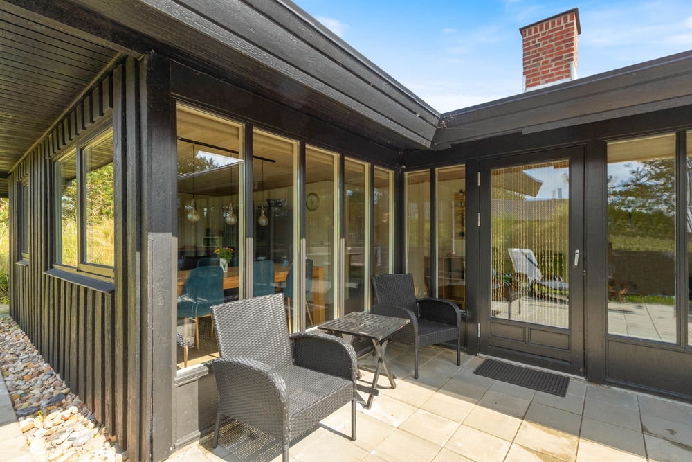 På den 1.200 kvadratmeter store naturgrund omkring sommerhuset er der en gynge og en sandkasse til børnene. Imens de er beskæftiget, kan du slappe af på de komfortable havemøbler og nyde den friske havluft. Bagefter kan I alle spille et kongespil derude. Om aftenen kan I arrangere en fælles BBQ og tilberede en række delikatesser på grillen.