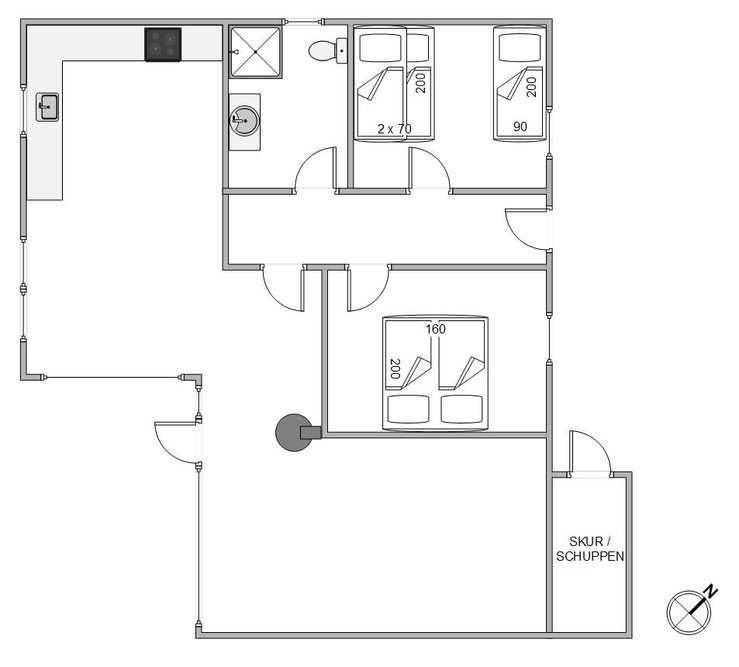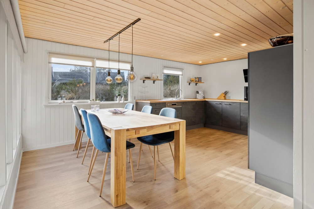 I køkkenet finder du alt, hvad du behøver for at tilberede et lækkert måltid. Prøv en lækker fiskeret med helt frisk fisk fra områdets fiskebutikker ? eller har du mod på det, kan du selv fange den. Der er opvaskemaskine og vaskemaskine i feriehuset, så I behøver ikke nødvendigvis at gøre alting selv.
