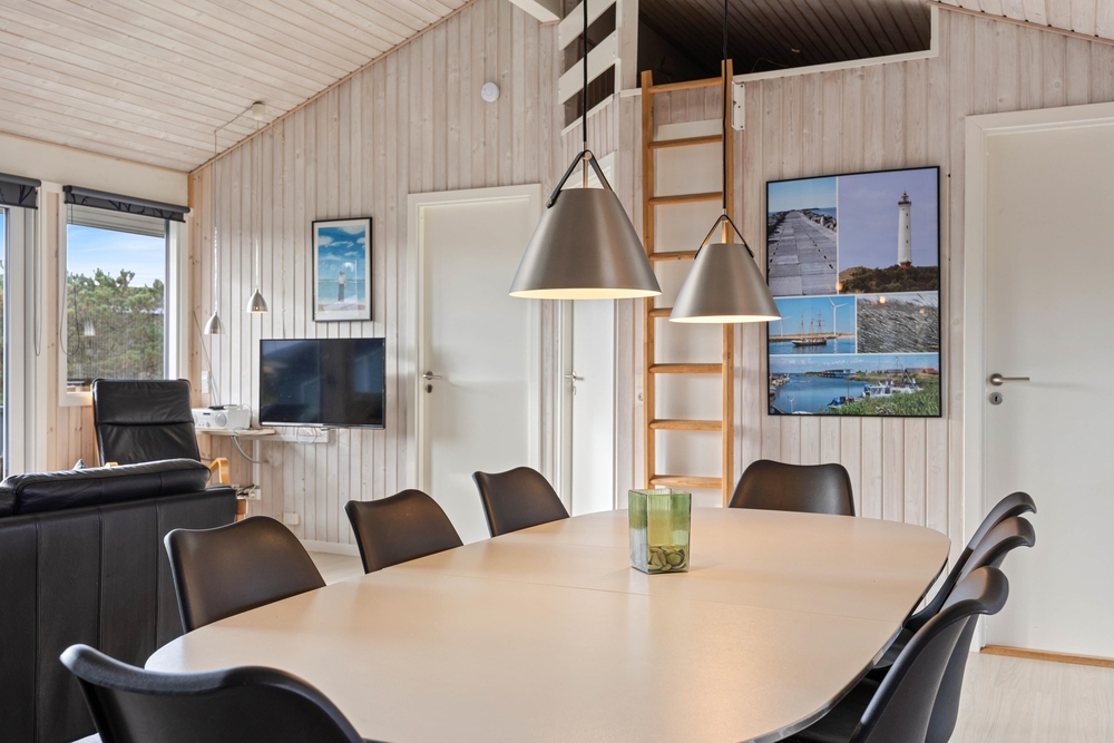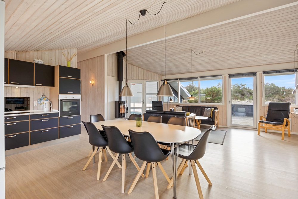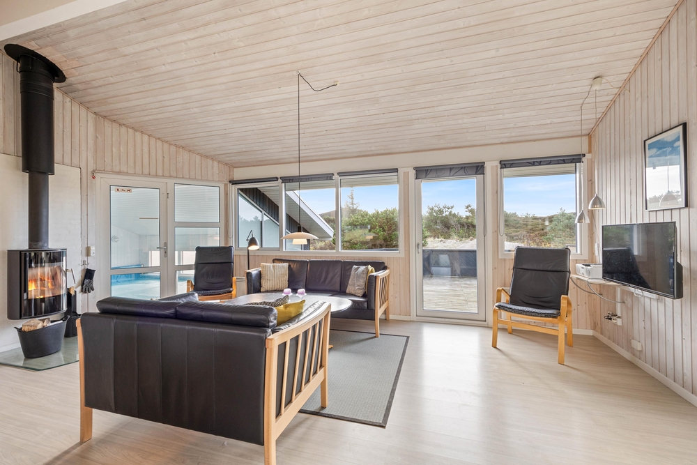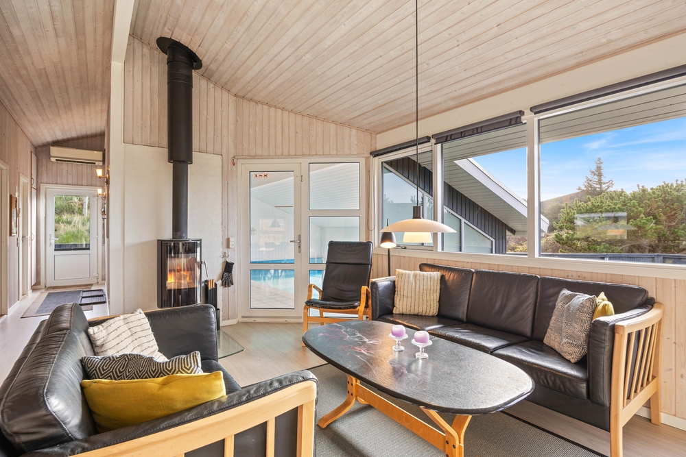 Efter en tur i poolen kan I samles i sommerhusets hyggelige opholdsrum, der ligger i åben forbindelse til det veludstyrede køkken. Her kan I nyde hinandens selskab og spille et sjovt brætspil, mens brændeovnen knitrer i baggrunden og sætter prikken over i?et til feriestemningen. Sommerhuset har desuden en energibesparende varmepumpe, som I med fordel kan benytte jer af.