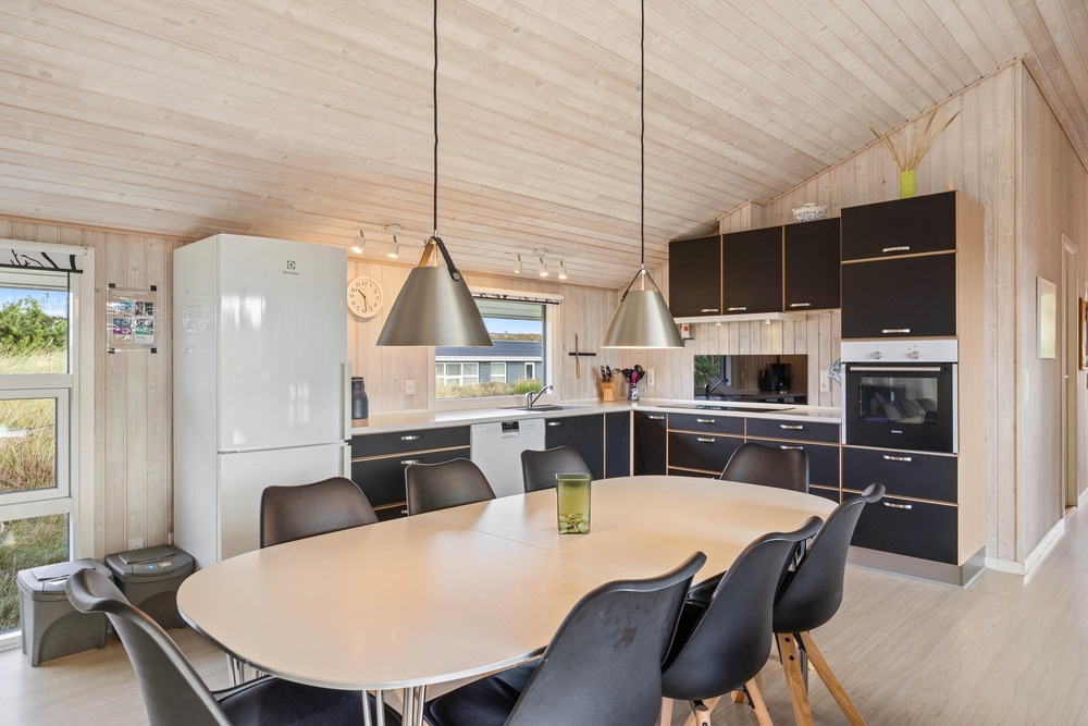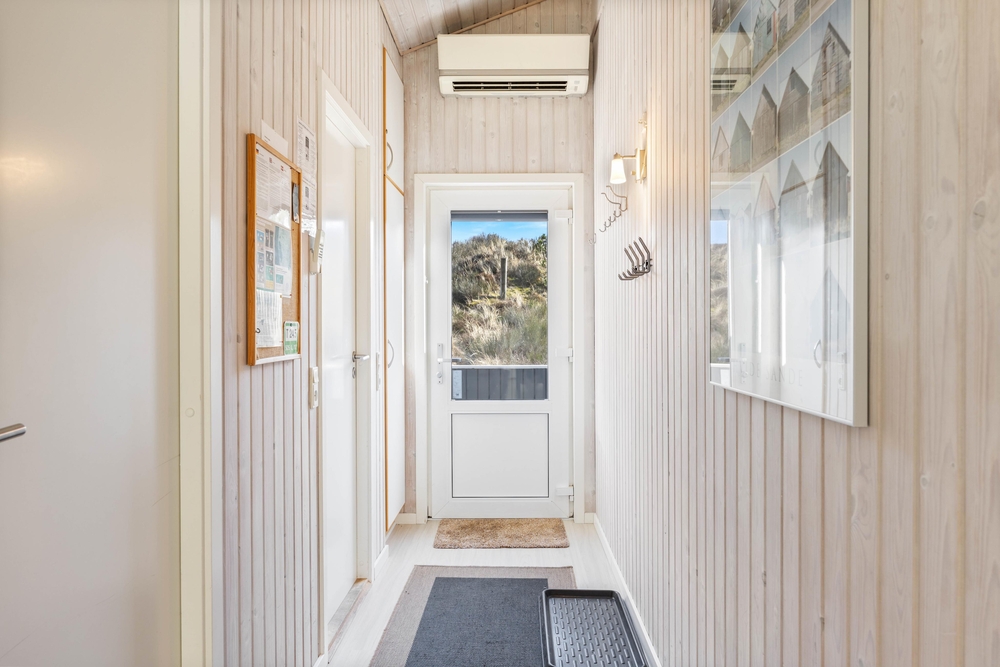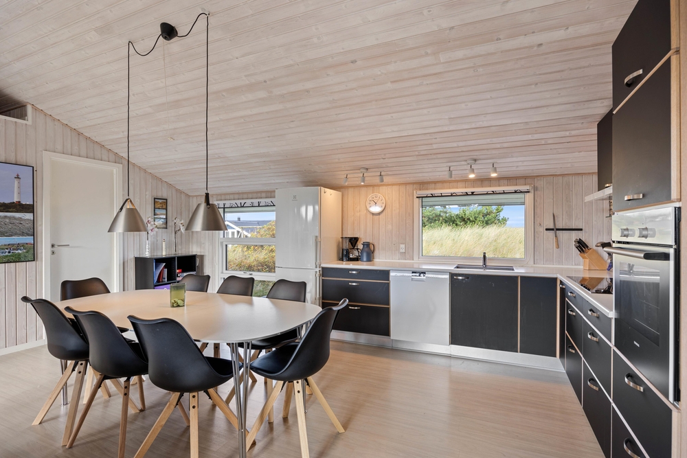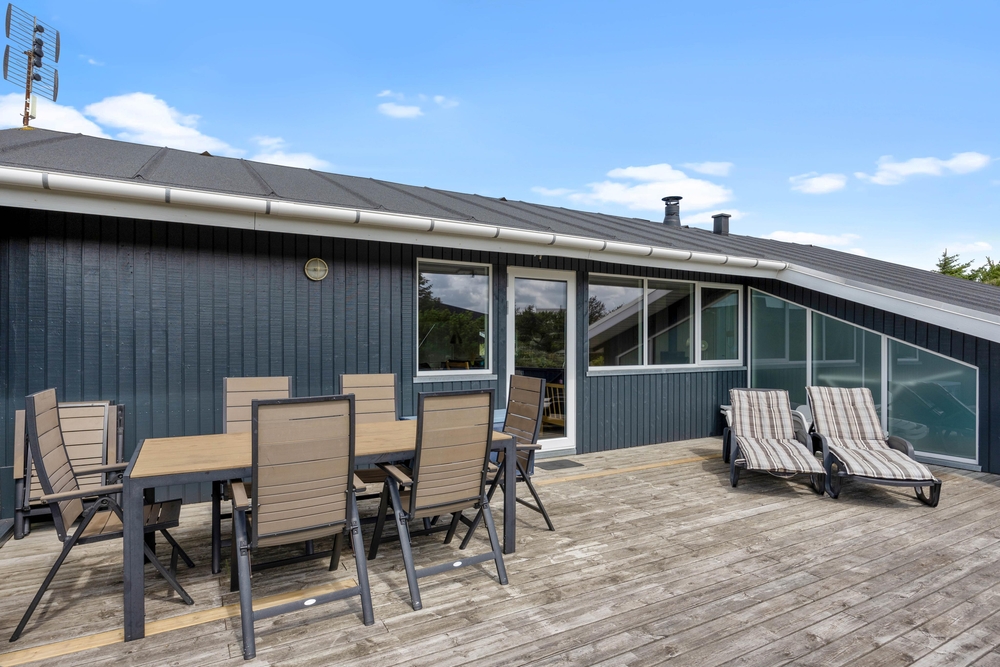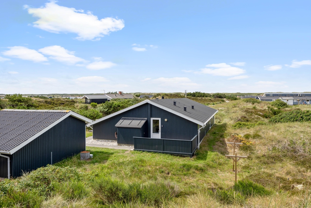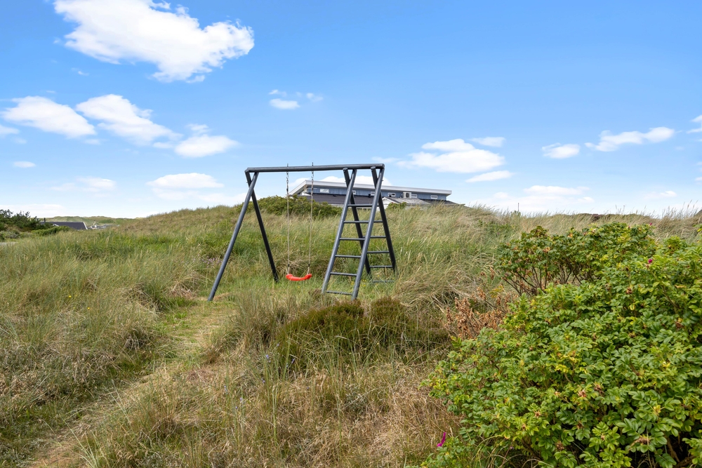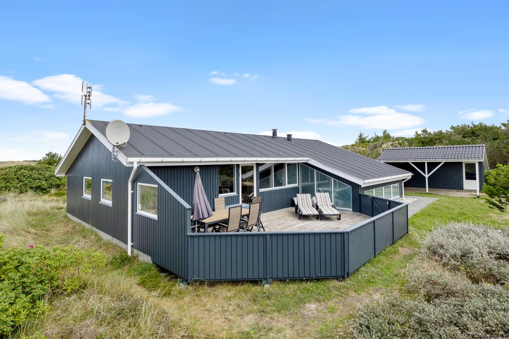Fra opholdsrummet har I udgang til en afskærmet og lukket terrasse, som indbyder til mange hyggelige stunder på lune sommerdage. Her kan I tænde op i grillen og tilberede et lækkert aftensmåltid, mens solen går ned bag klitterne. Sommerhuset ligger på en dejlig naturgrund med gyngestativ, hvor børnene kan lege, mens kødet grilles færdigt.