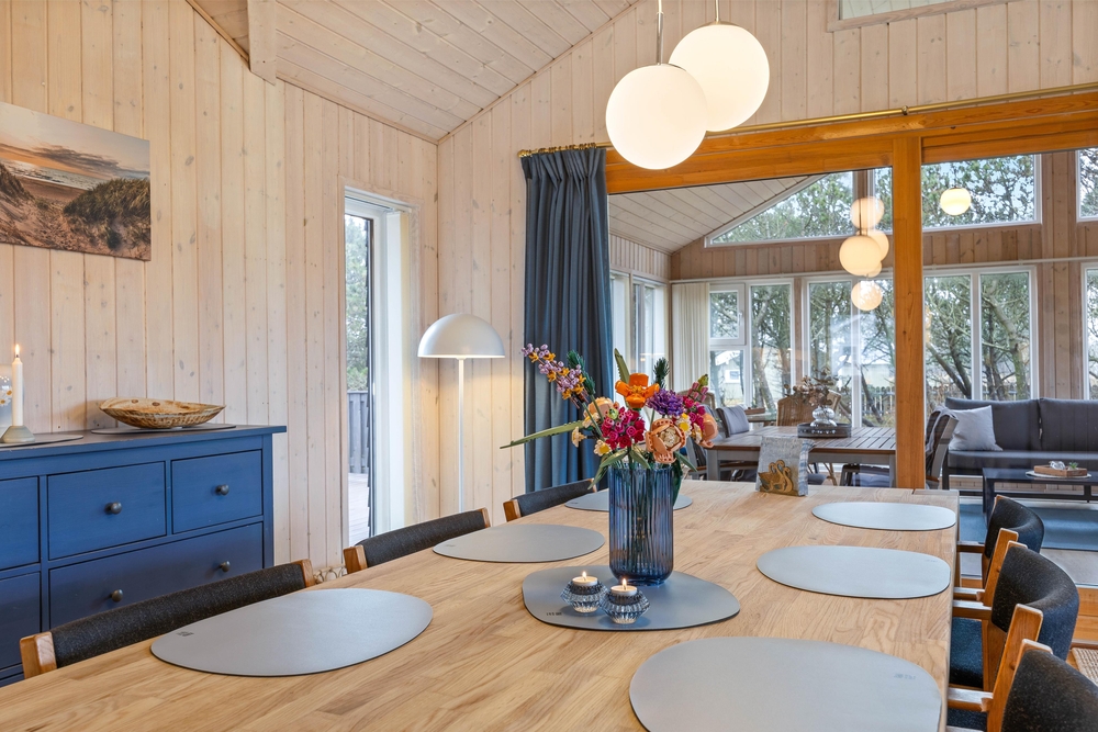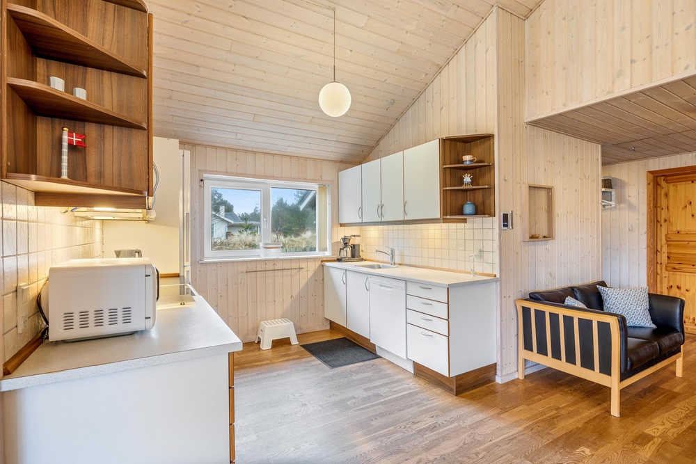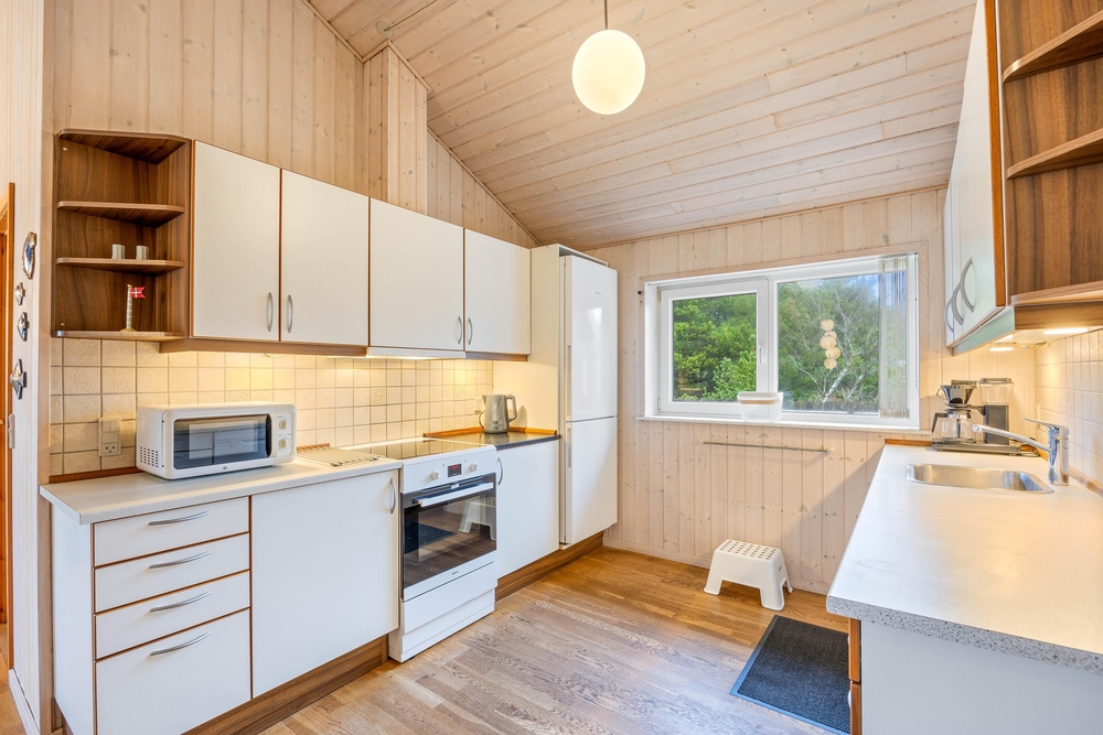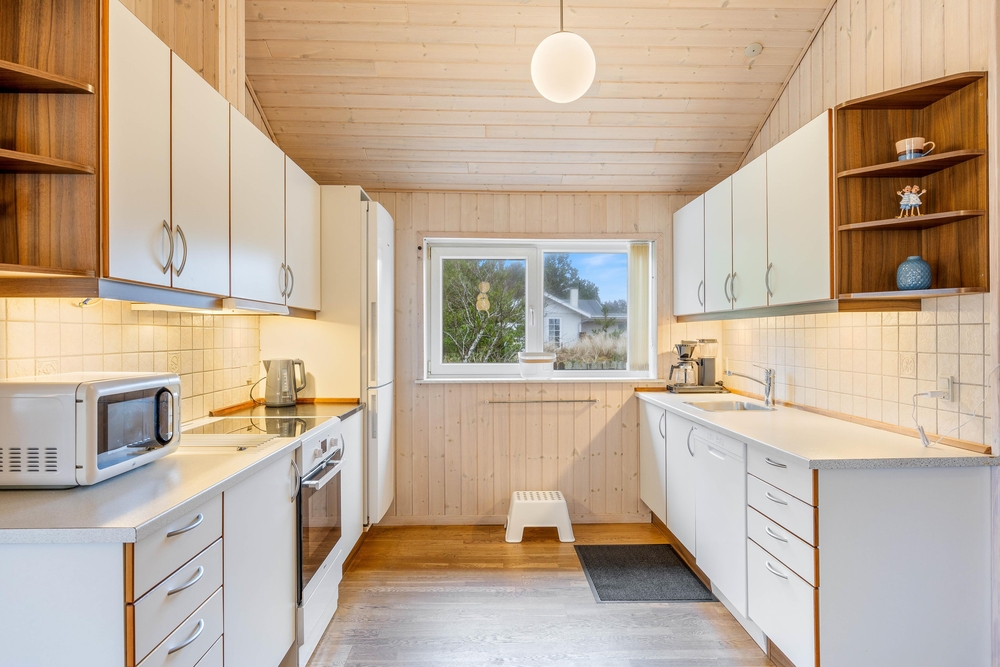 Lys, rummelighed, hygge og komfort betegner dette skønne sommerhus beliggende på en delvis afskærmet naturgrund mellem hav og fjord. Sommerhusets køkken er renoveret i 2025 og har dersuden en velisoleret udestue, der virker som en naturlig overgang til terrasserne med mange læmuligheder og til den omkringliggende natur. Udestuen kan anvendes det meste af året.