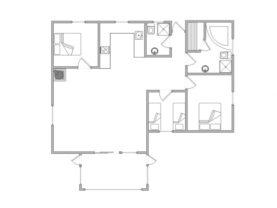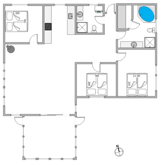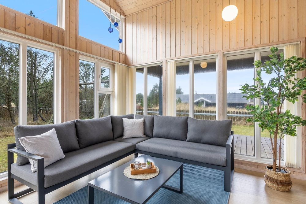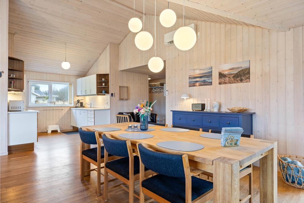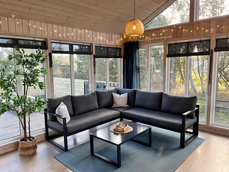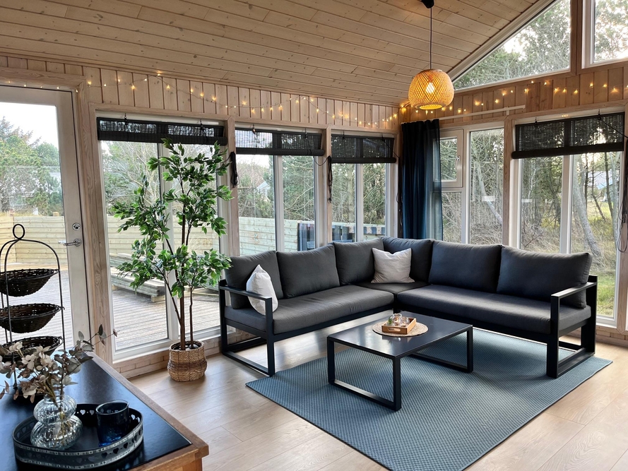 De 112 m2 er praktisk fordelt: Det åbne køkken-alrum med stue, moderne køkken samt adgang til udestuen, bliver utvivlsomt samlingspunktet. Her er der plads til fælles madlavning, filmaftener i sofaen, sjove spil og planlægning af feriens udflugter i den unikke natur ? lokalt som regionalt. Den isolerede udestue tillader tilbagetrækning og afslapning med lys og udsigt til natur og himmel.