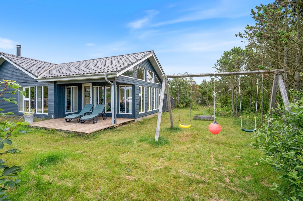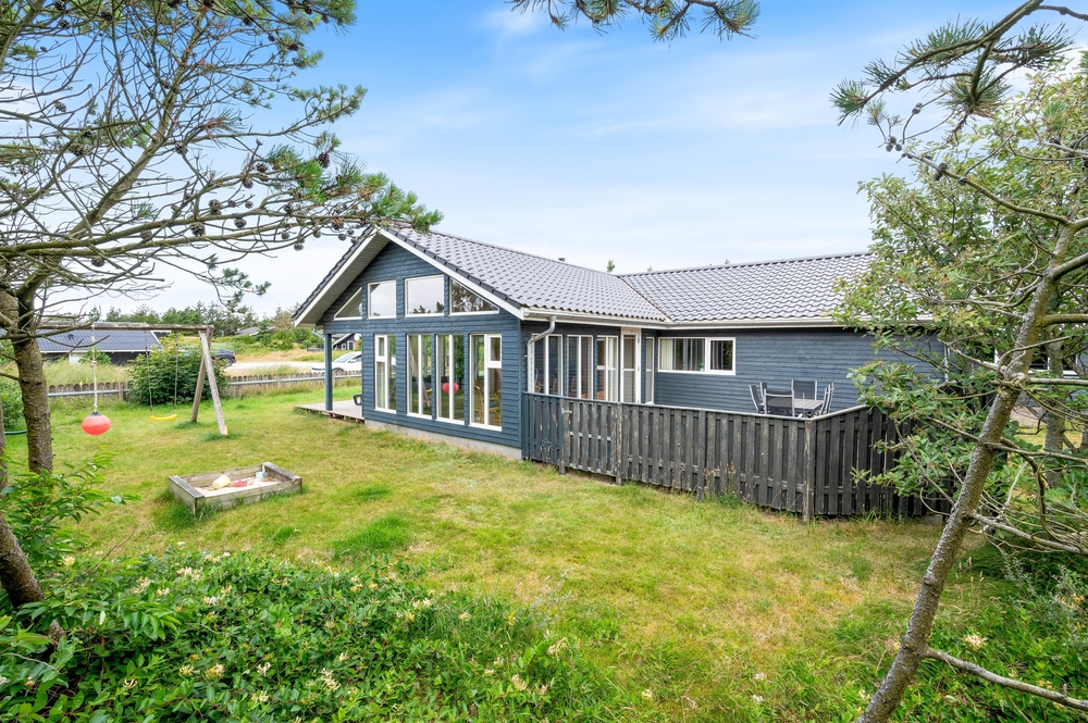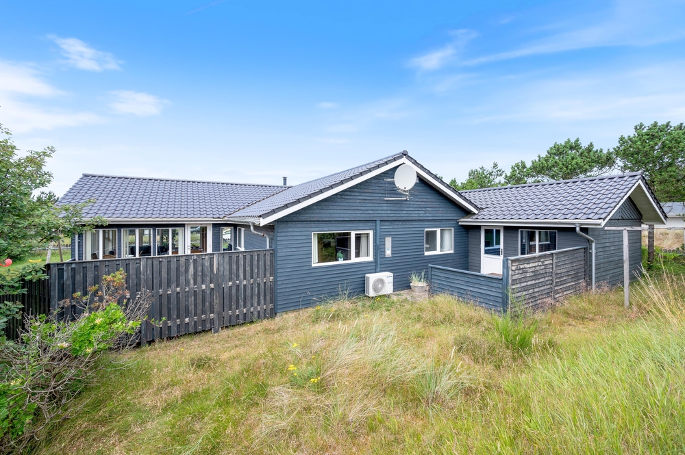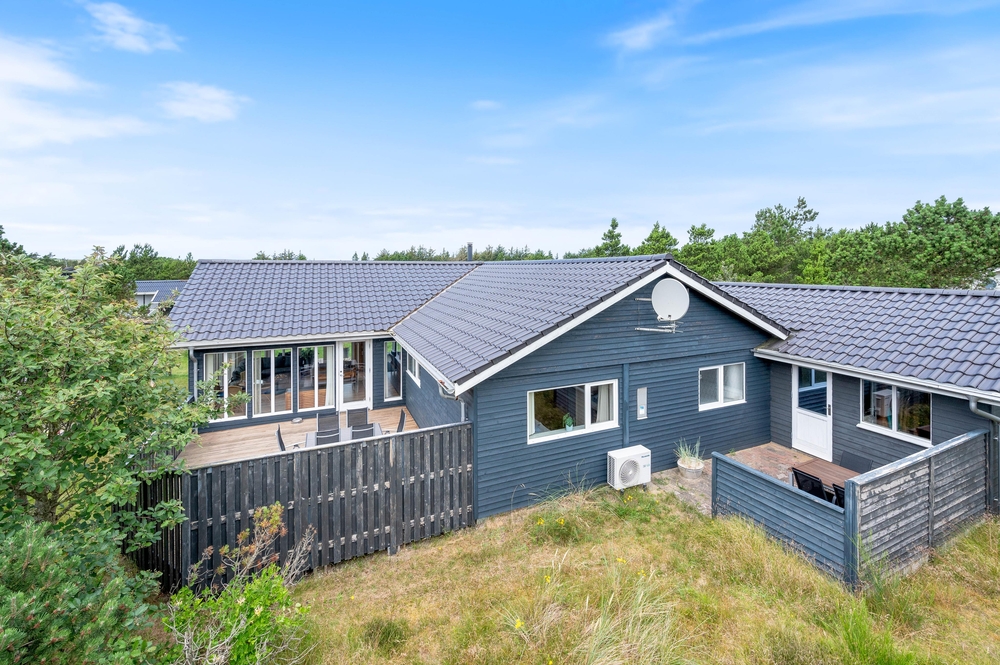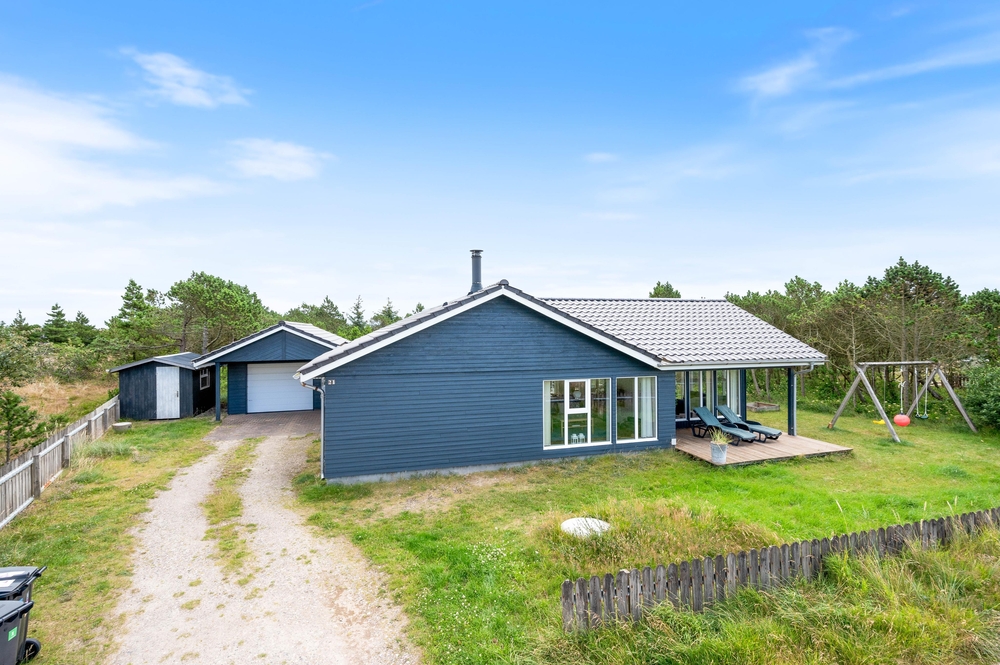 Bjerregårdsvej 21 er beliggende i et stort og roligt sommerhusområde. Herfra har I hverken langt til Vesterhavets salte bølger og sandstrande eller den lokale købmand. Købmanden sælger hver dag friskbagte rundstykker og nås let via de mange stier, der forbinder området ? et naturskønt område perfekt til cykelture eller lange gåture.