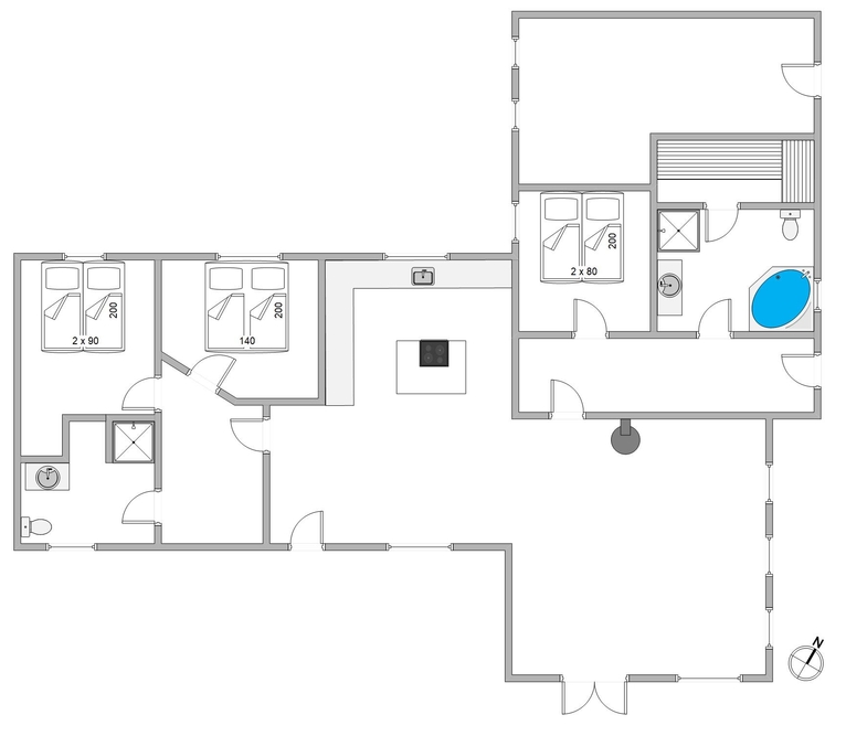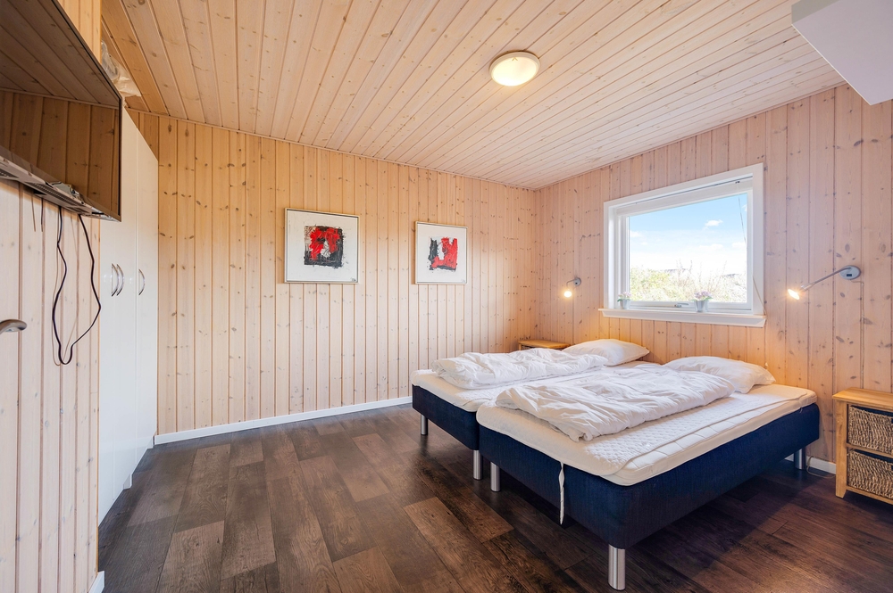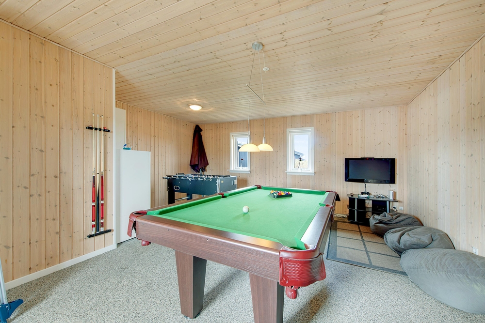 Det er et flot og stort sommerhus med masser af plads og komfort. Sommerhuset har et dejligt aktivitetsrum med billard, dart, Nintendo Wii og Playstation 2. Her er plads til 6 personer i 3 soveværelser, ? alle med dobbeltsenge. Her er 2 badeværelser med gulvvarme, det største har et flot 2 personers boblebad samt adgang til feriehusets sauna. Her kan I rigtig slappe af i varmen efter en frisk gåtur i det blæsende efterårsvejr.