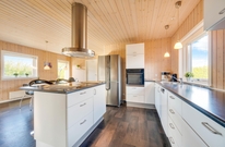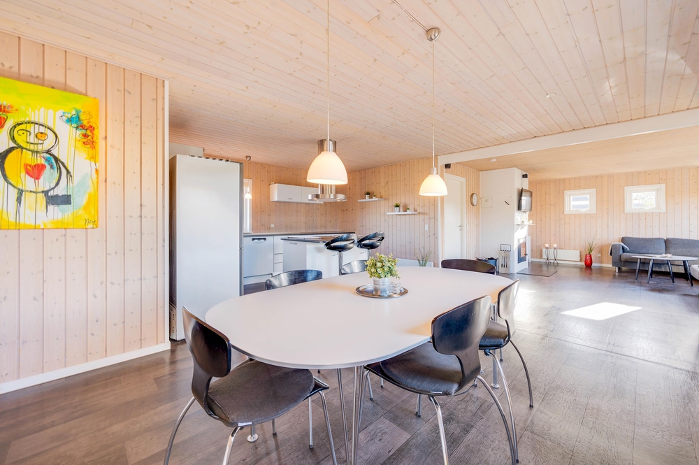 Stuen er stor og rummelig, smagfuldt møbleret og står i åben forbindelse med det flotte køkken, som har opvaskemaskine og stort ?amerikaner? køleskab med fryser. Feriehuset har desuden gratis trådløst internet.
