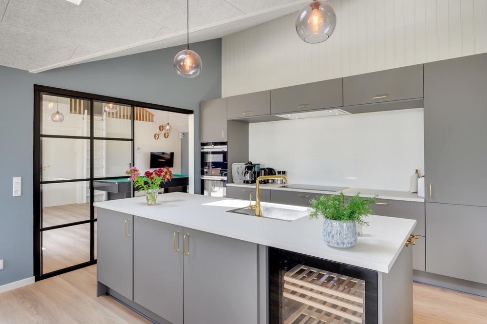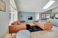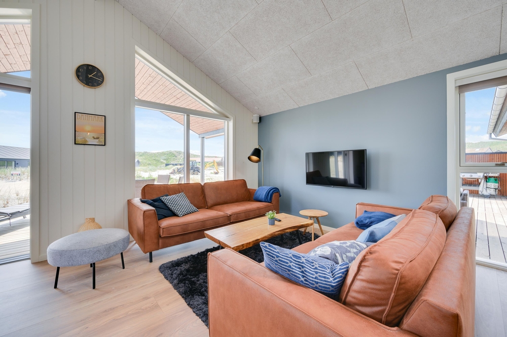 Sommerhuset byder dig velkommen med moderne møbler i indbydende og varme farver. I midten af sommerhuset finder I den store opholdsstue, som ligger i åben forbindelse med køkkenet. Stuens sofahjørne indbyder til hyggelige stunder med familien, hvad enten det er til en filmaften eller et spil kort. Der er en Chromecast i feriehuset, som I kan benytte jer af.
