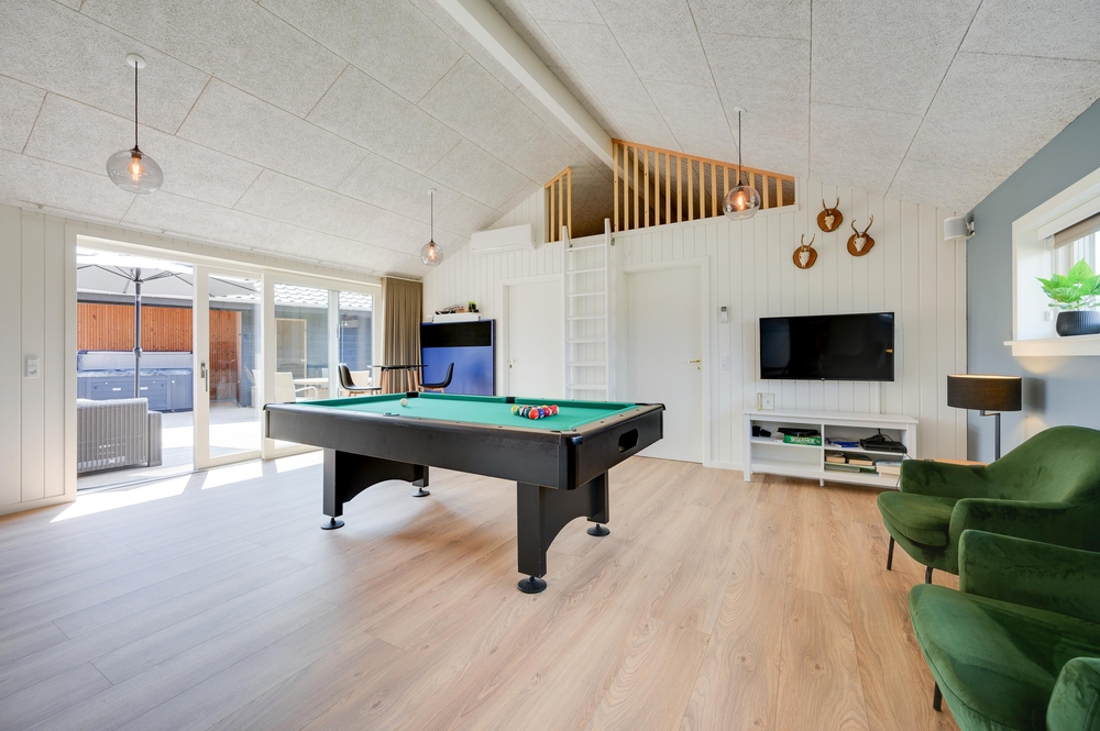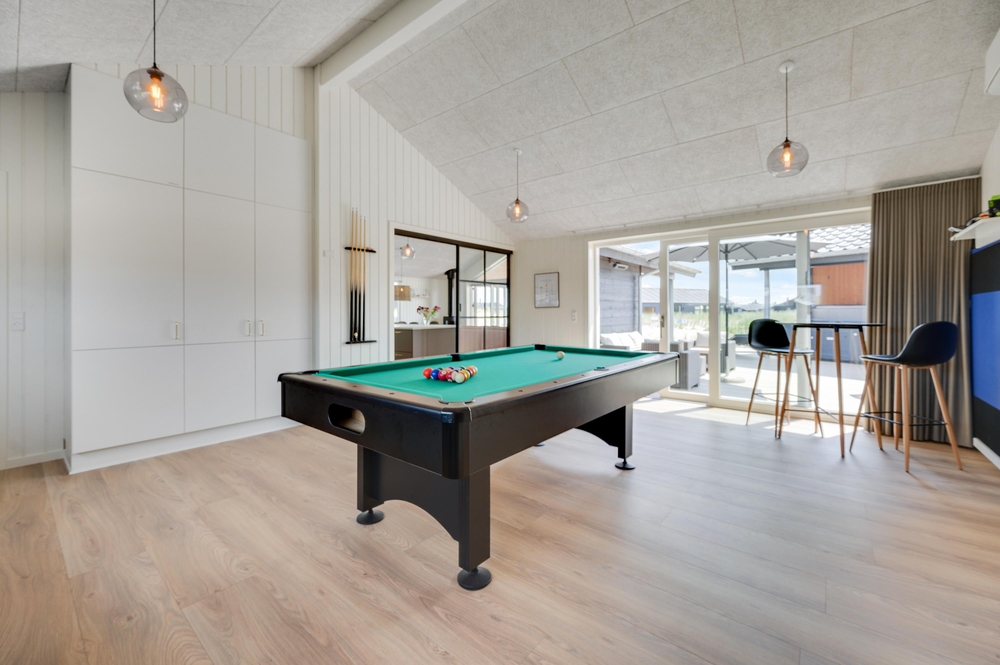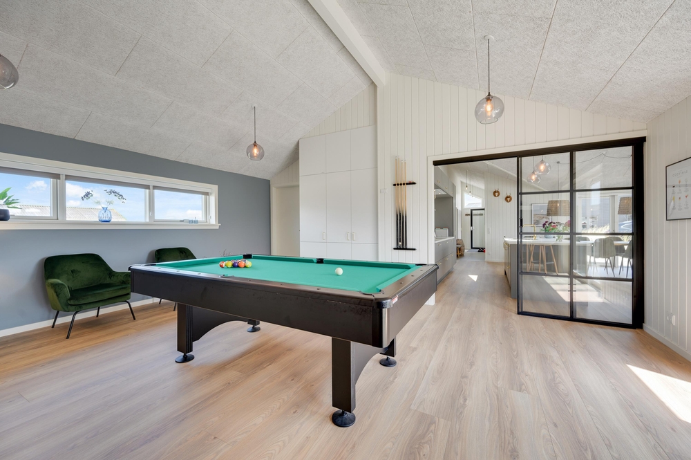 I forlængelse af køkkenet finder I det store aktivitetsrum, hvor hele familien kan få mange timer til at gå. Her er både billard og bordtennis, så der kan afholdes spændende turneringer. I aktivitetsrummet er der en energibesparende varmepumpe.