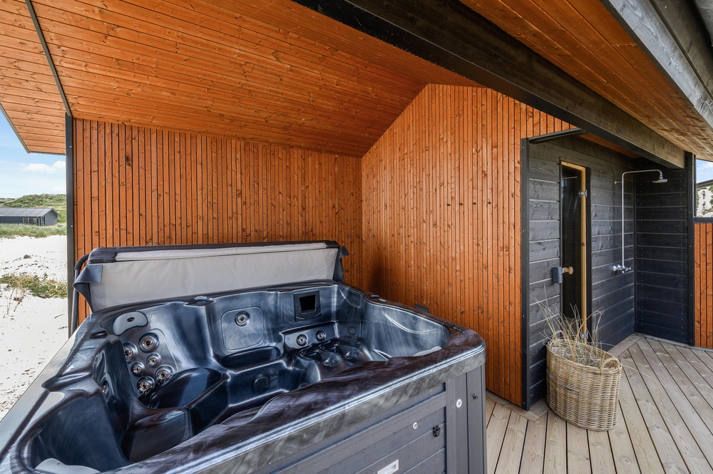 En udespa står klar til afslapning og velvære efter en begivenhedsrig dag efterfulgt af en tur i den varme udesauna. Der er også en udebruser ved siden af ??feriehuset til en forfriskende skyller. Her kan I også skylle sand af fødderne efter en gåtur på stranden. Udebruseren kan benyttes fra april til november.