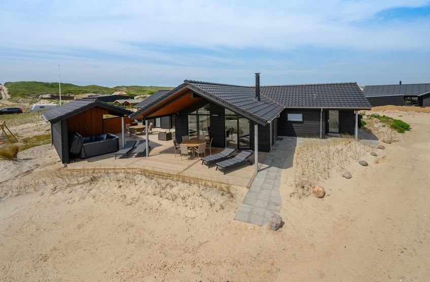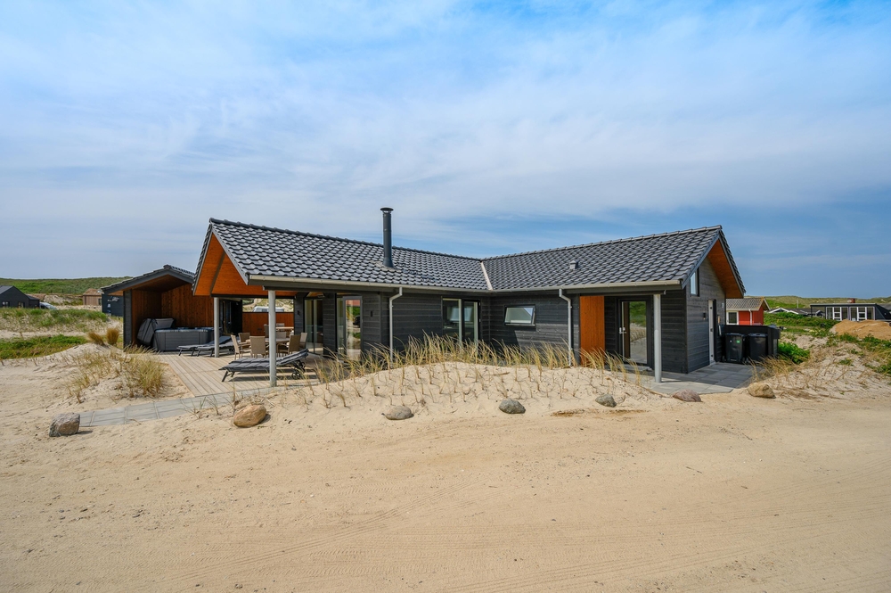 Blot 200 meter fra Vesterhavet ligger dette luksuriøse sommerhus på Bjerregårdsvej 391. Sommerhuset er opført i 2021, og indretningen rummer alt, hvad I har brug for til en skøn ferie. Her er aktivitetsrum med billard og bordtennis samt udendørs wellnessområde med udespa, udesauna og udebruser. 2 hunde er velkomne i sommerhuset.