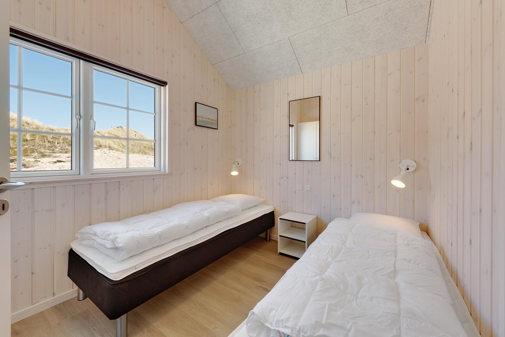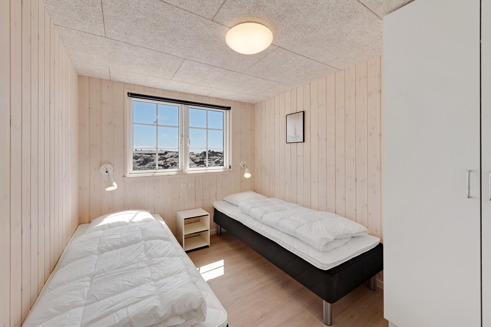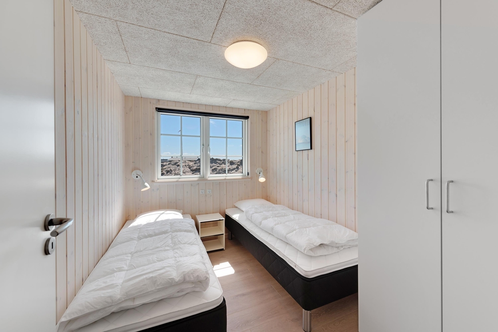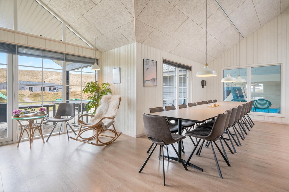 Den strandnære beliggenhed skal selvfølgelig også udnyttes, og kun 100 meter væk ligger det brusende Vesterhav og kalder på jer. Gå lange ture langs vandkanten eller overvær en smuk solnedgang på en klar aften.