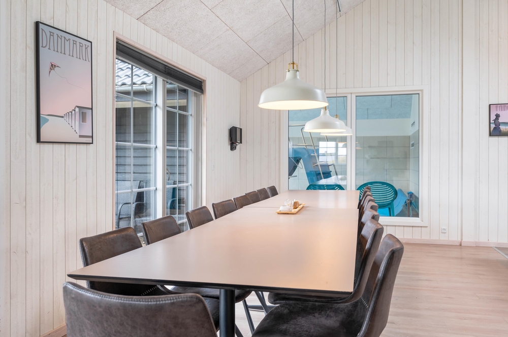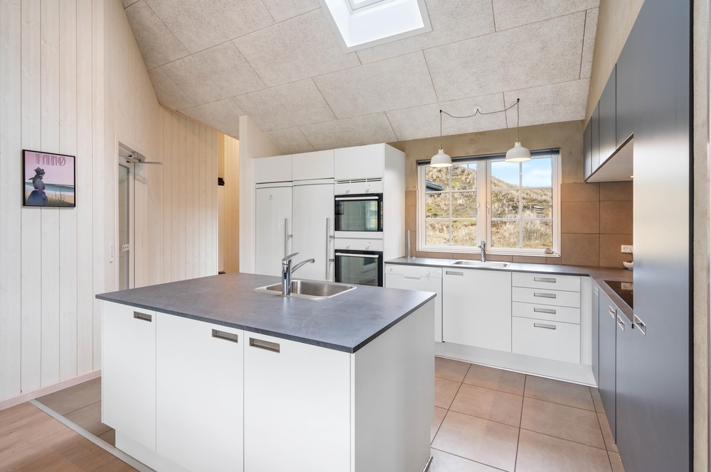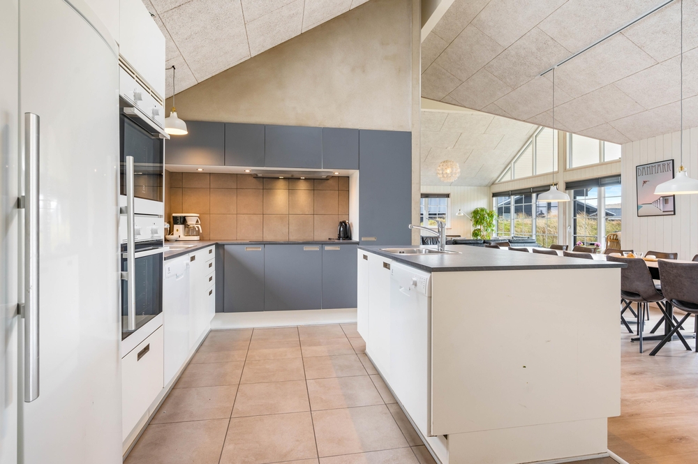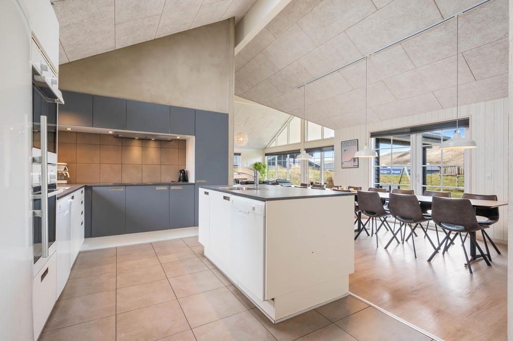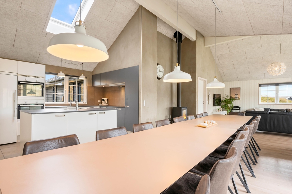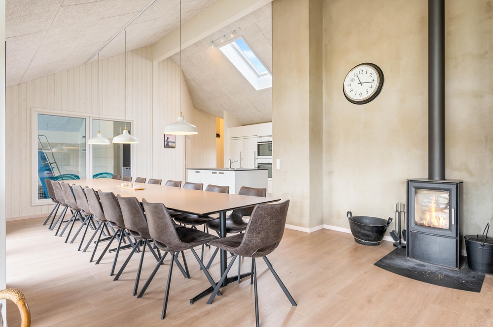 De 3 badeværelser med gulvvarme minimerer toiletkøerne, og det veludstyrede køkken med 2 komfurplader, opvaskemaskiner, håndvaske og ovne gør det nemt at tilberede lækre feriemåltider til 18 personer. Den hurtige og stabile internetforbindelse sørger også for, at I kan koble masser af enheder på nettet på samme tid.