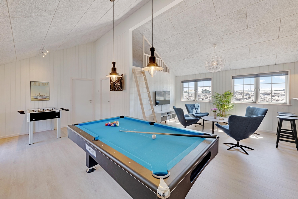 I behøver ikke forlade huset for at finde underholdning; med både swimmingpool med svømmetræner, sauna, spabad og aktivitetsrum er der sørget for sjov og spas til alle feriegæster, lige meget om I er til afslapning og wellness eller billard og bordfodbold.